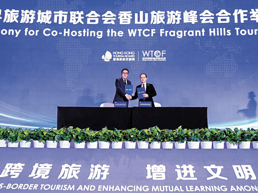 昨日在會上,香港旅遊發展局與世界旅遊城市聯合會簽署合作備忘錄。