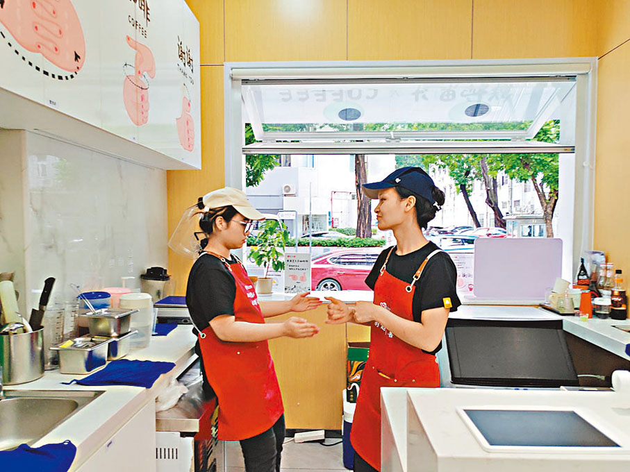 由於聽不見,聽障職員的專注度更高。新的技能,往往三天他們就能爛熟於心。「平均兩分鐘一杯咖啡,即便是在CBD的就餐高峰期,我們也能滿足顧客的需要。」2021年,潘鵬當上店長,從此他便成為了店裏主動去和顧客接洽的人。