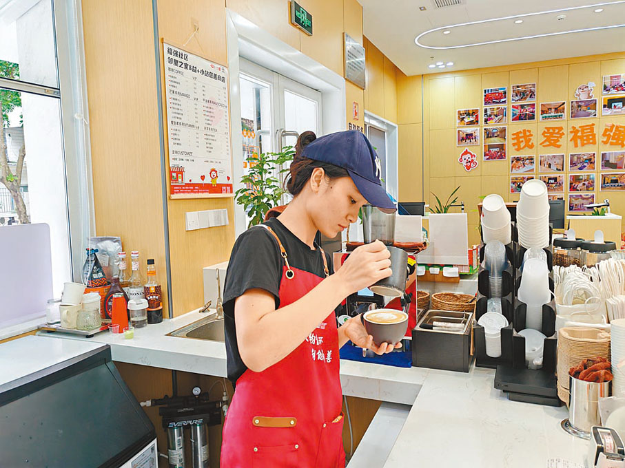 得益於華強北街道福強社區的幫助,社區黨群服務中心的一角被免費改造成了咖啡店。今年7月開業以來,聽障人員在這裏收穫到工作的成就感。咖啡店只有十幾平米,但布置得很溫馨,牆上不僅貼有飲品的名稱,在下邊還做了常見手語的普及。在這裏,來自台灣的楊元成和團隊夥伴們一起成長,希望用更好的運營模式,幫助更多聽障人士融入社會。