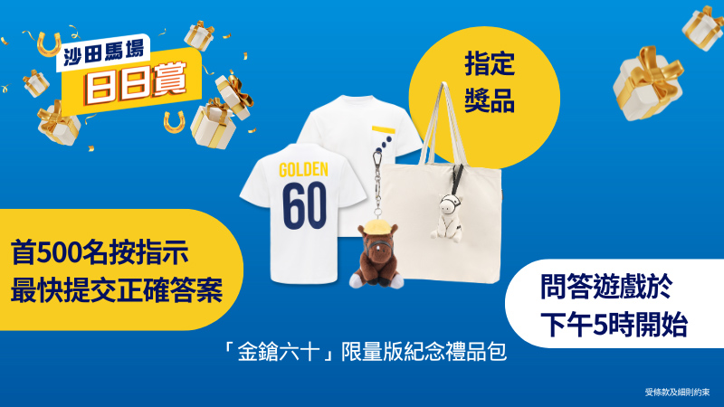 當日下午5時,入場人士可以參加「沙田馬場日日賞」有獎問答遊戲。首500名最快提交正確答案的參加者可獲一份指定「金鎗六十」限量版紀念禮品包,內附「金鎗六十」匙扣、 「金鎗六十」 T恤及小馬摺疊環保袋 。