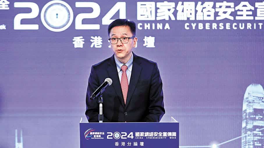 創新科技及工業局局長孫東,中央政府駐港聯絡辦副主任尹宗華,中央網信辦網絡安全協調局副局長王麗宏等主禮「2024國家網絡安全宣傳周—香港分論壇」並致辭。
