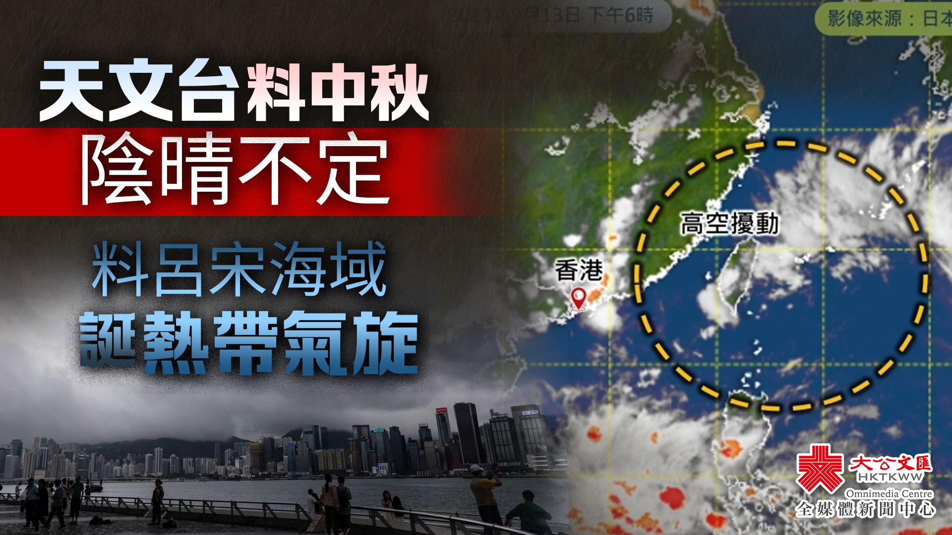 大公文匯全媒體報道,中秋節將至。天文台昨日(13日)在「天氣隨筆」最新預測,下周二及周三(17、18日,即中秋節正日及翌日)部分時間有陽光,亦有一兩陣驟雨,籲市民安排中秋活動時,留意天文台最新天氣預報。