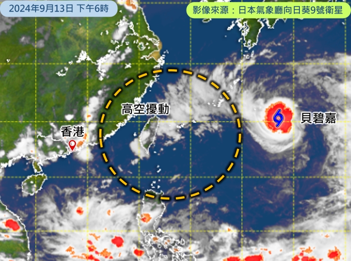 至於本周末,天文台指,今午衛星圖像顯示高空擾動在廣東東部沿岸觸發對流活動,預料高空擾動會在周末期間為廣東沿岸帶來幾陣驟雨及雷暴;而位於西北太平洋的熱帶氣旋「貝碧嘉」,則會在周末期間橫過琉球群島一帶並逐漸增強,隨後靠近華東沿岸,但對華南天氣沒有直接影響。