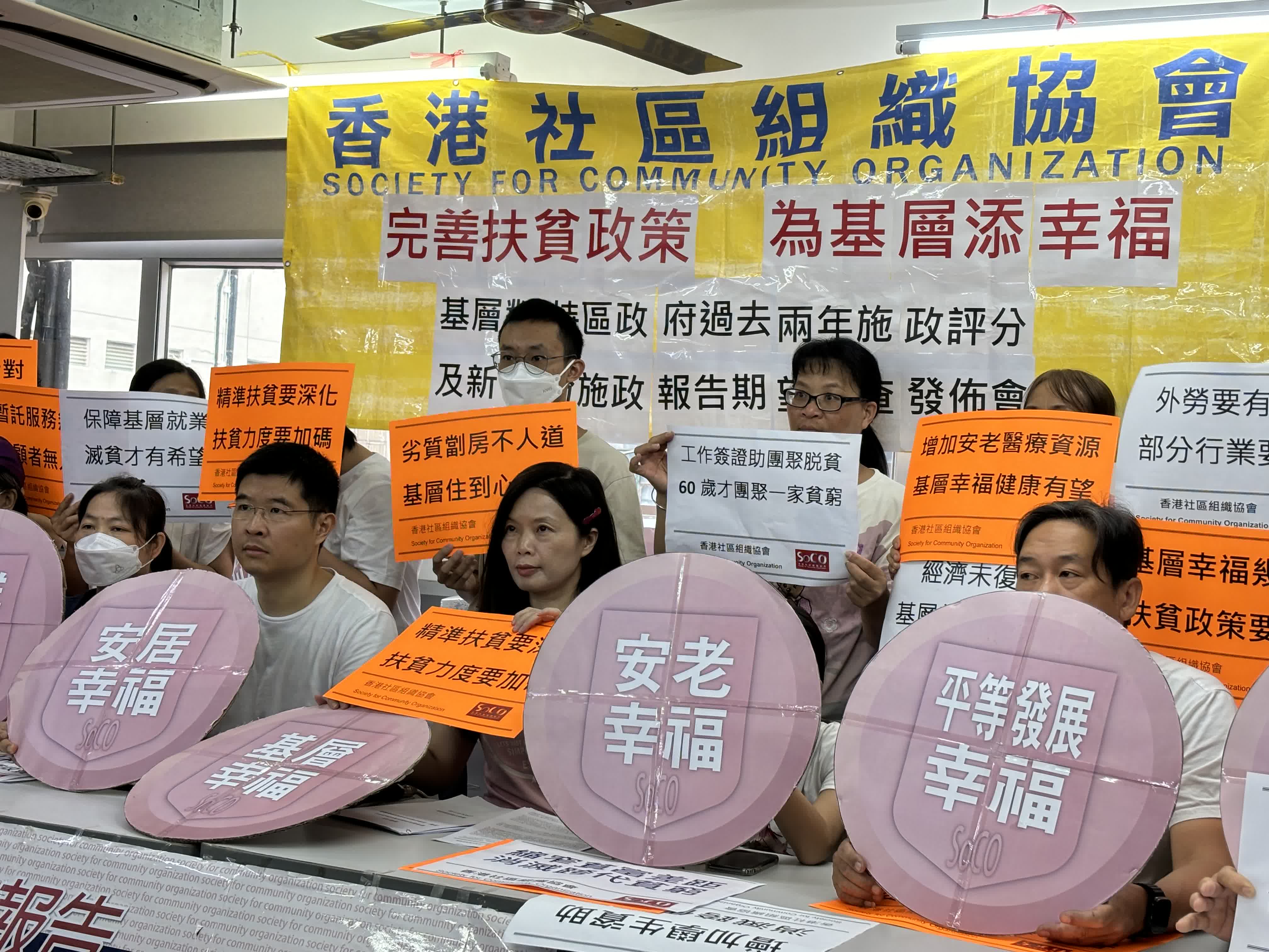 社區組織協會認為,以增加土地及房屋供應為例,政府已積極開拓土地、縮短房屋建屋期,惟各項措施仍需時落實,非一兩年內可見成效,公屋供應更出現十年內「頭輕尾重」的情況,導致市民未必短時間內感受到政策成效。精準扶貧方面,現屆政府推出「共創明TEEN」計劃、社區客廳、關愛隊、在校課後託管服務試行計劃等多項措施,惟聚焦劏房戶、單親家庭及清貧長者,綜援受助人、在職貧窮家庭、精神復原人士、無家者等弱勢群體的支援服務改革着墨不多,批扶貧力度不足。