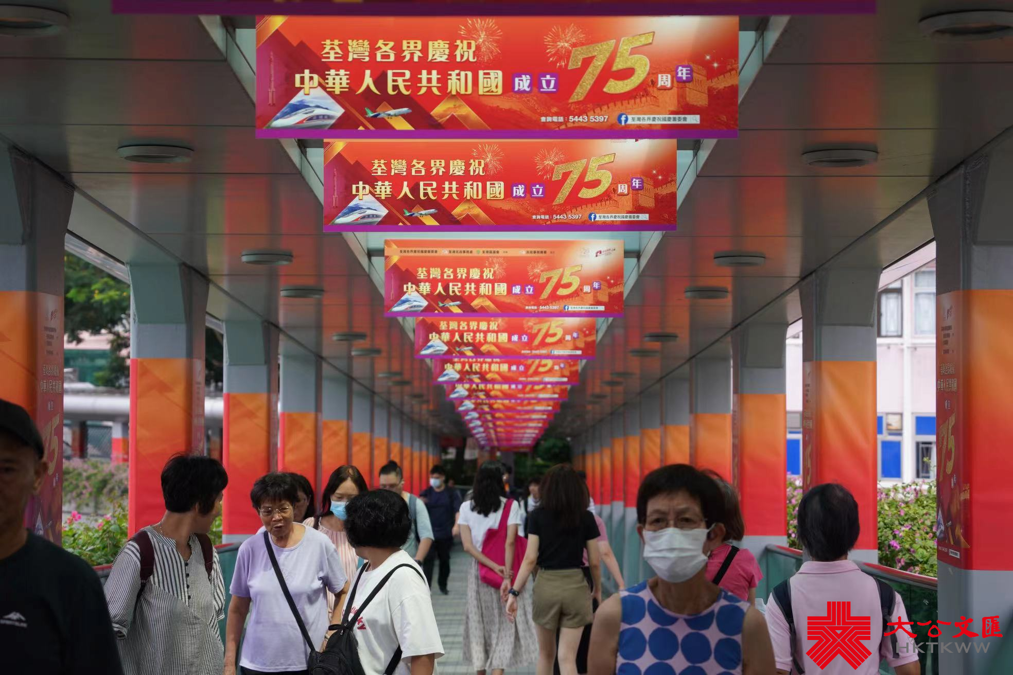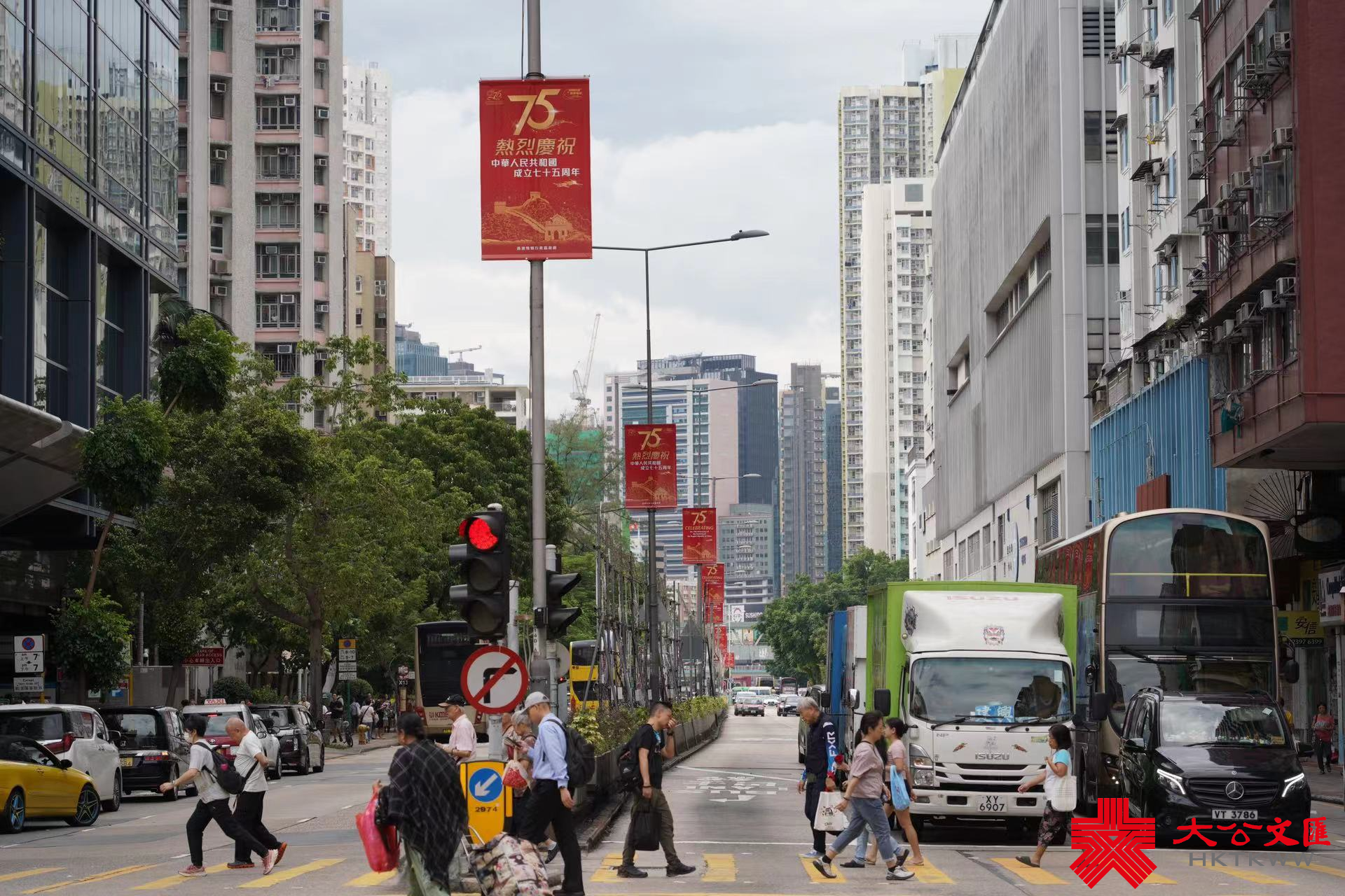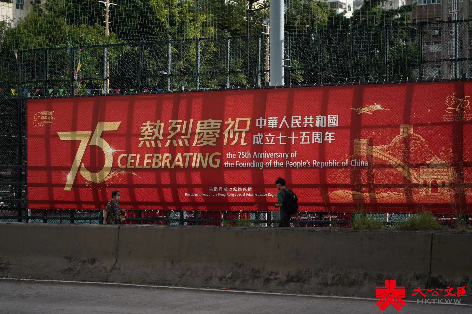 大公文匯全媒體報道,中秋、國慶佳節將至,今年也是中華人民共和國成立75年的喜慶日子。在「雙節」到來之際,香港各處都已布滿了慶賀的橫幅和裝飾,節日氣氛濃厚。