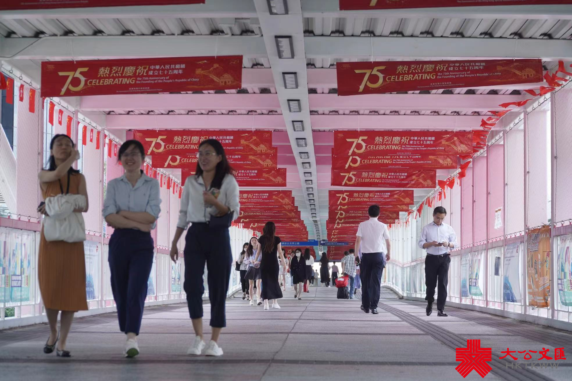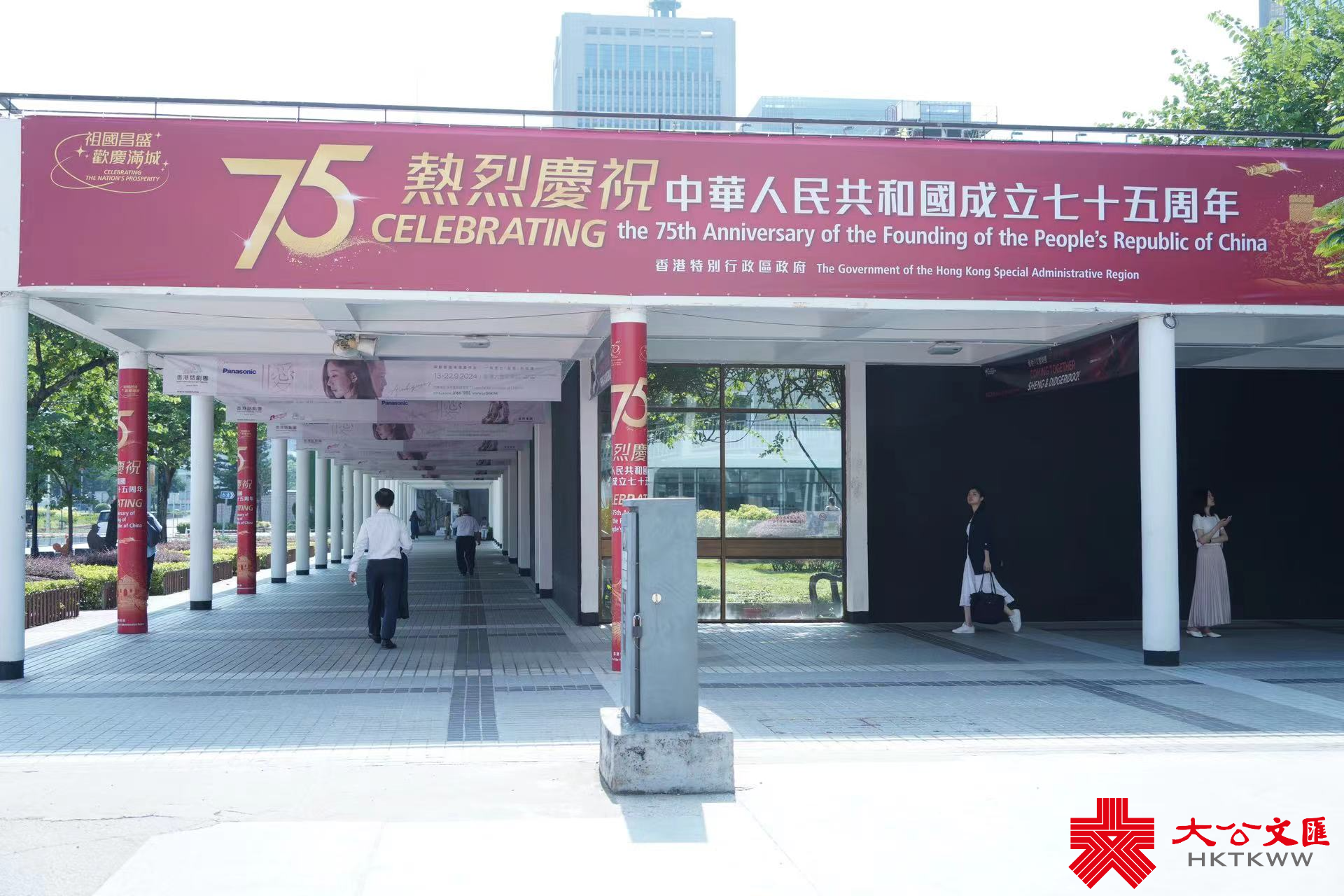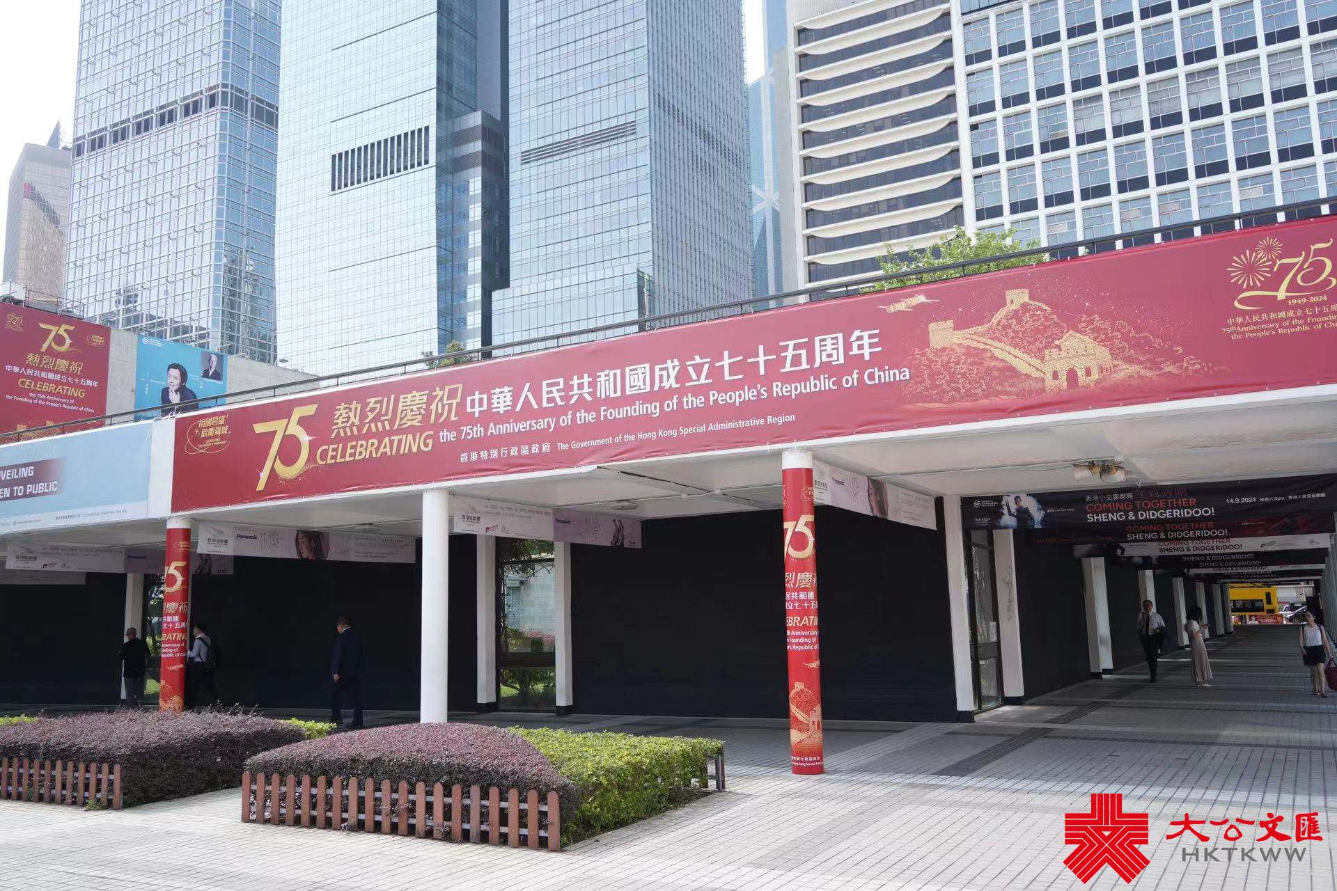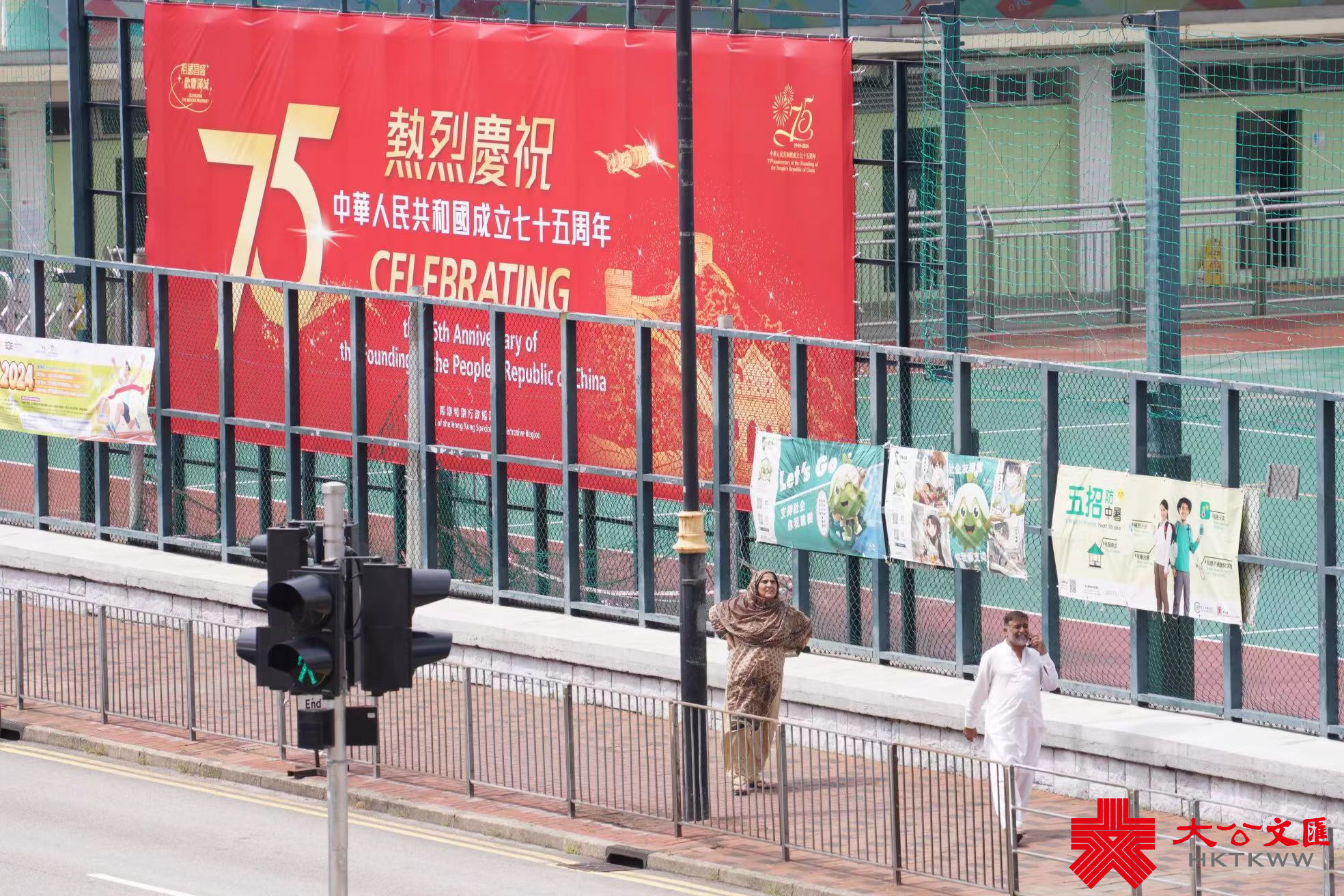 大公文匯全媒體報道,中秋、國慶佳節將至,今年也是中華人民共和國成立75年的喜慶日子。在「雙節」到來之際,香港各處都已布滿了慶賀的橫幅和裝飾,節日氣氛濃厚。
