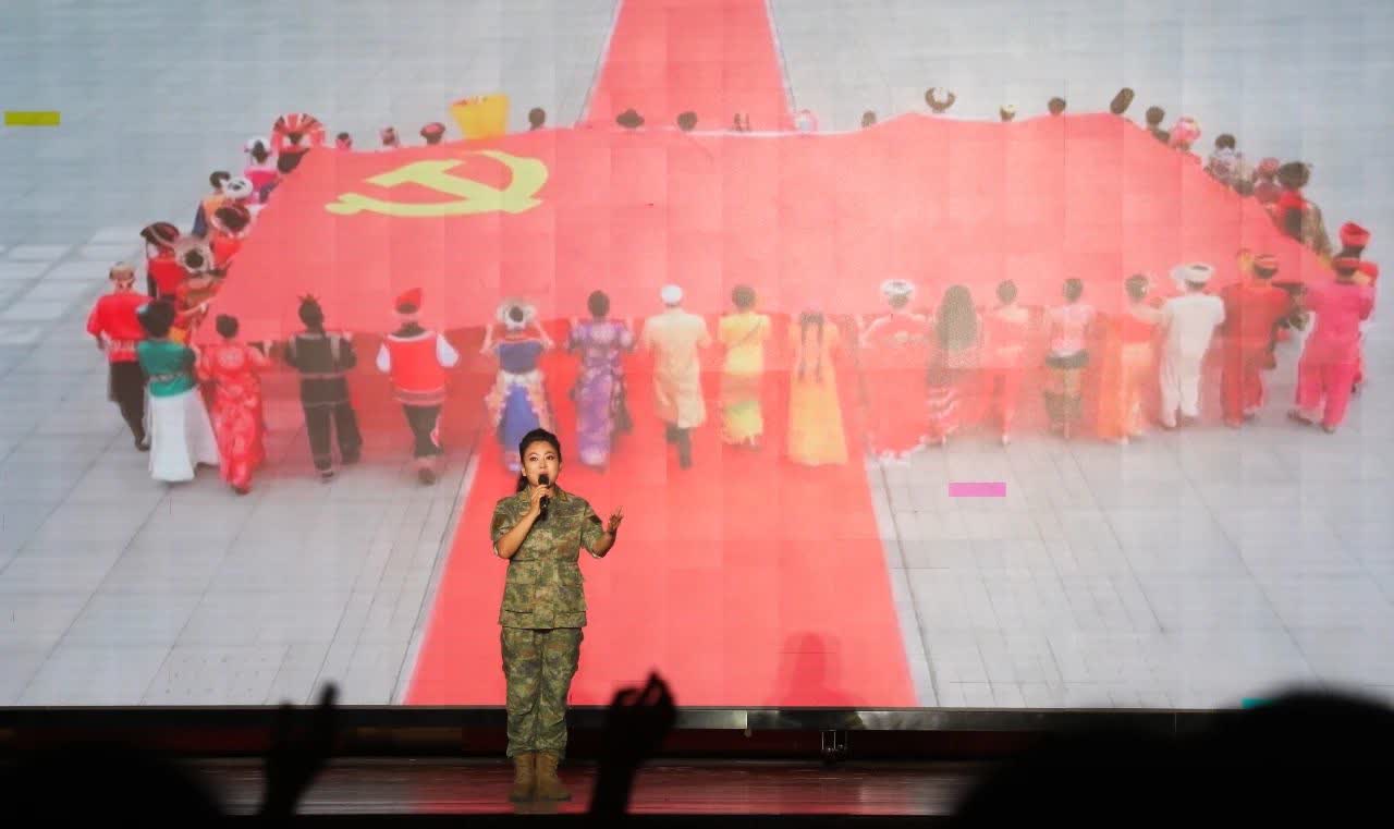 歌手阿魯阿卓、澤旺多吉用激昂的歌聲催生出官兵不忘初心、奮勇前行的動力源泉,激勵着廣大官兵堅定踏上強軍興軍的新征程。