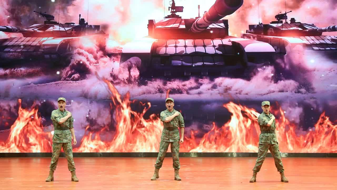 「戰鼓轟鳴,我的步伐堅定不折腰,硝煙四起,我的勇氣在燃燒……」男聲三重唱用膾炙人口的歌詞,唱響了新時代革命軍人勇往直前、向戰而行的豪情壯志。