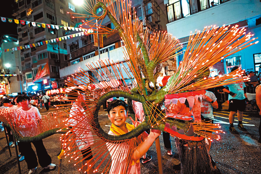 (香港文匯報記者 吳健怡)香港市民歡度中秋節的年度盛事大坑舞火龍活動,昨晚起一連三晚舉行,吸引大批巿民和遊客到場觀賞。主辦單位今年增添多項新元素,除浣紗街定點表演區外,更新增銅鑼灣道的定點表演區,另有100名小健兒舞動約1萬顆LED燈的小火龍。現場上萬名市民及旅客對這場震撼的火龍盛會讚不絕口,有澳洲遊客接受香港文匯報訪問時表示,見證到中國傳統節慶的美,活動讓他們零距離感受中國慶典的氣氛,直言會向朋友推介,並計劃再來港探索奧妙神奇的中華文化。