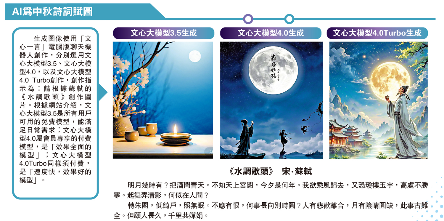 用免費與收費版本的AI模型閱讀《水調歌頭》等經典中秋詩詞,由此創作生成的圖片簡陋與精緻一目了然,果然是一分價錢一分貨。