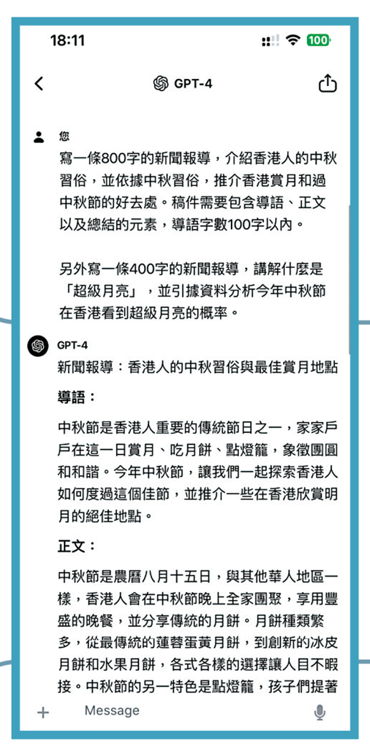 GPT-4生成文字|介紹香港過中秋習俗 推介賞月地點