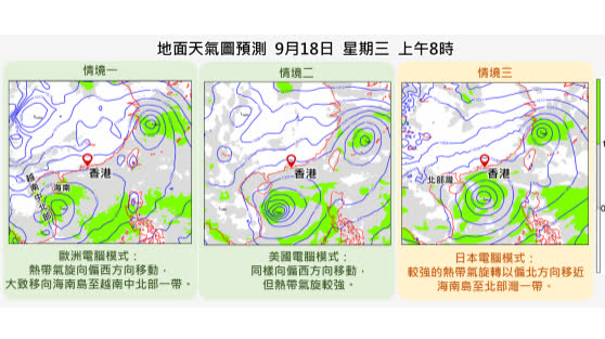 天文台指,根據最新衛星雲圖顯示,呂宋附近的對流雲團系統逐漸變得較有組織,一個熱帶氣旋似乎在形成中。天文台預料,這個低壓系統會在今日(17日)進入南海,有可能發展為熱帶氣旋。該系統隨後會向偏西方向移動,但受東北季候風影響,其路徑存在變數。熱帶氣旋路徑概率預報顯示,該系統有較大機會移向海南島至越南中北部一帶。亦有個別模式預測該低壓系統會以較緩慢的速度橫過南海,並在本周後期轉以較偏北方向移近海南島至北部灣一帶,而且強度較強。
