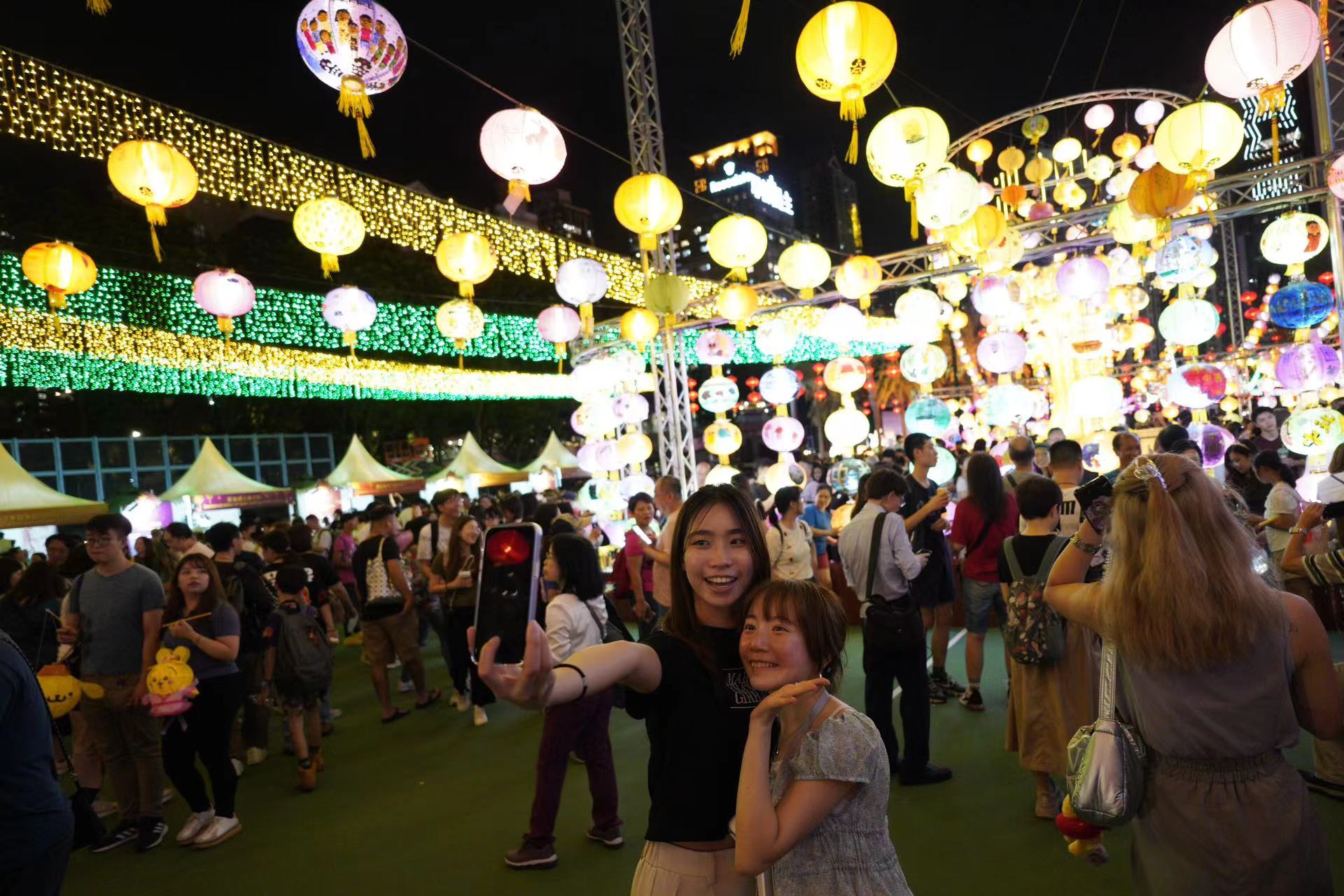 大公文匯全媒體報道,今晚(17日)為中秋夜,維園舉行的中秋綵燈會吸引大批市民遊客。雖然日間天氣非常酷熱,但晚上一开始天公造美,皓月當空。在大公文匯全媒體記者的鏡頭下,欣賞綵燈的市民遊客均露出燦爛笑容,分享屬於他們的甜蜜幸福。