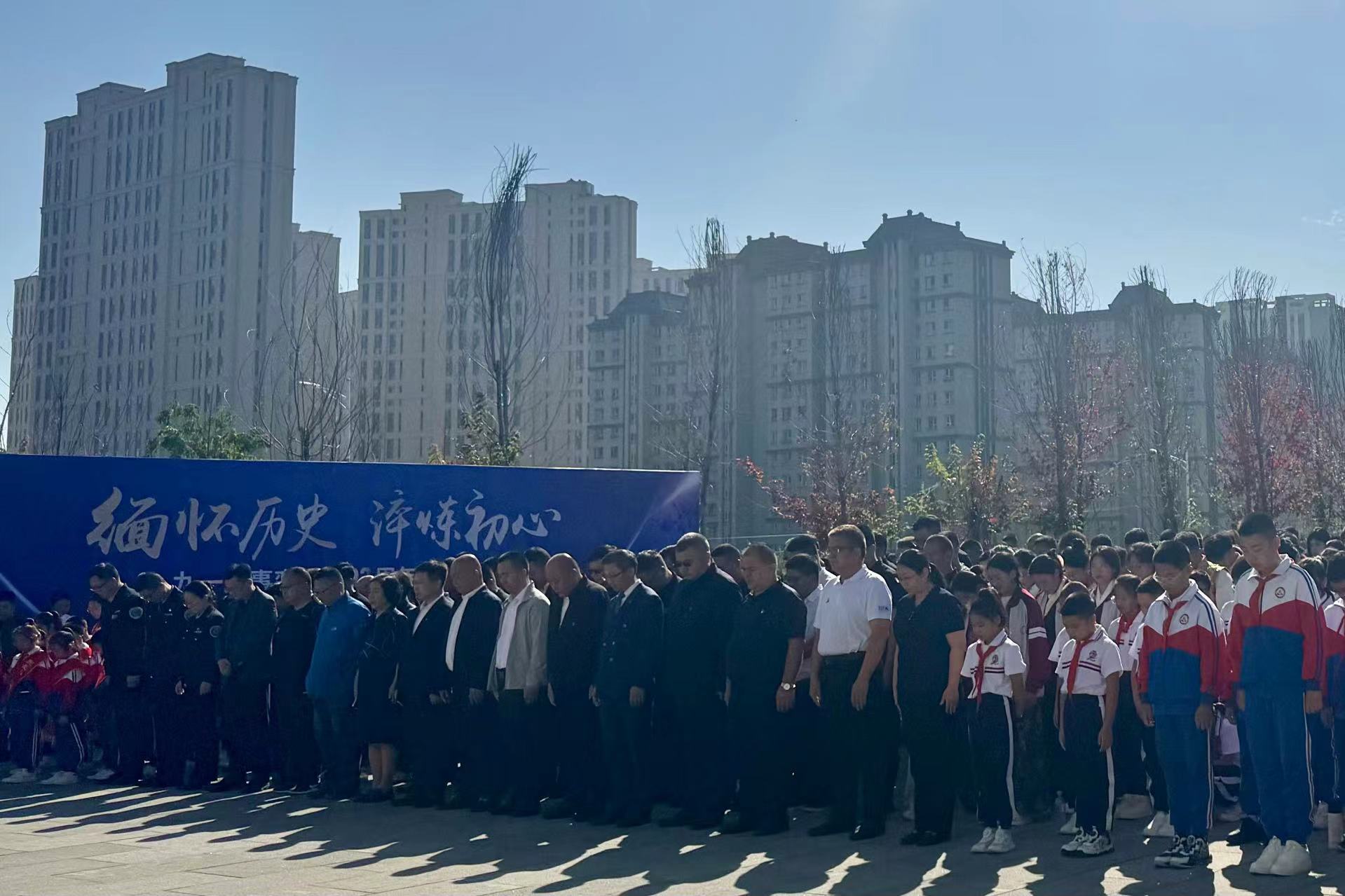 上午9時18分,防空警報劃破長空,500餘名社會各界群眾在東北淪陷史陳列館前共同向在抗日戰爭中死難的同胞佇立默哀,深切緬懷為奪取抗日戰爭勝利而獻出生命的革命先烈。隨後,各界群眾集體面向國旗,莊嚴宣誓。