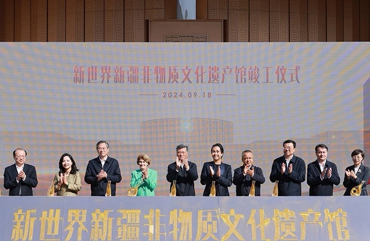 新世界新疆非遺館於2023年5月開工,總建築面積13088平方米,以「中華瑰寶·天圓地方」為設計理念,突出中華文化標識,充分體現中國氣派、現代審美和非遺特點。將集中展示新疆非遺代表性項目和我國入選聯合國教科文組織的43個非遺名錄(名冊)項目、各省區市非遺代表性項目,以非遺資源展示導覽傳播,更好服務有形有感有效做好文化潤疆工作。