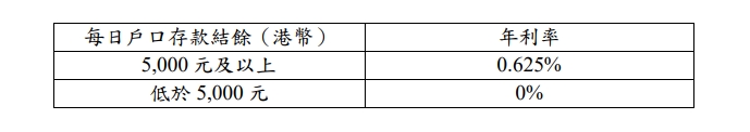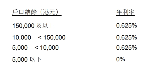 同時,滙豐給予港元儲蓄存款戶口的利率亦調低25點子。滙豐上一次於2023年7月28日調整港元儲蓄存款戶口利率,當時加息12.5點子。另外,滙豐給予全面理財總值達100萬港元及以上的額外年利率維持0.001%。
