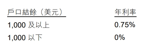 美元儲蓄方面,滙豐銀行同樣由明日(2024年9月20日)起,下調美元儲蓄存款戶口利率25點子,由年利率1.0%調低至0.75%。滙豐上一次於2023年7月28日調整美元儲蓄存款戶口利率,當時加息12.5點子。
