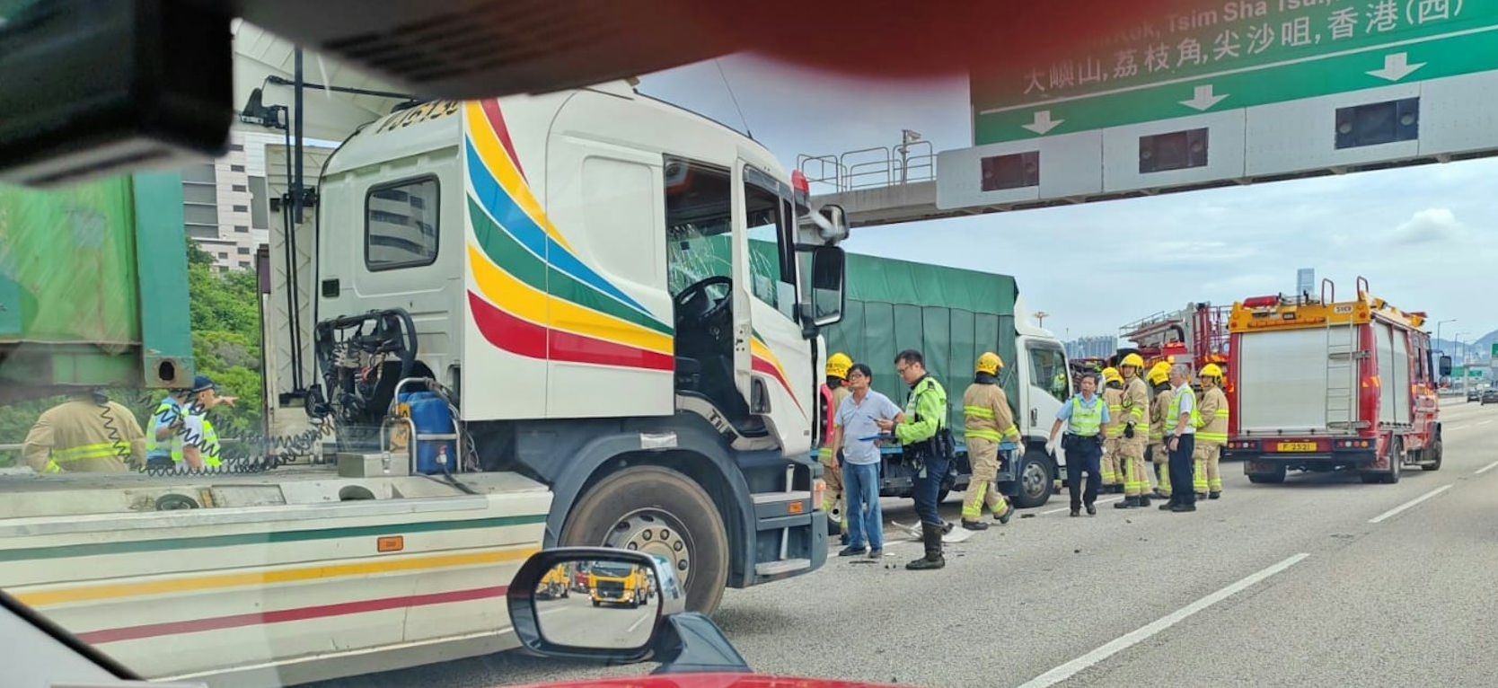 今日下午1時26分,青葵公路往九龍方向、近瑪嘉烈醫院對開發生4車相撞,包括一輛拖頭、兩輛貨車及一輛私家車。其中一名貨車司機一度夾腳被困車廂,救出後經由救護車送往瑪嘉烈醫院治理。