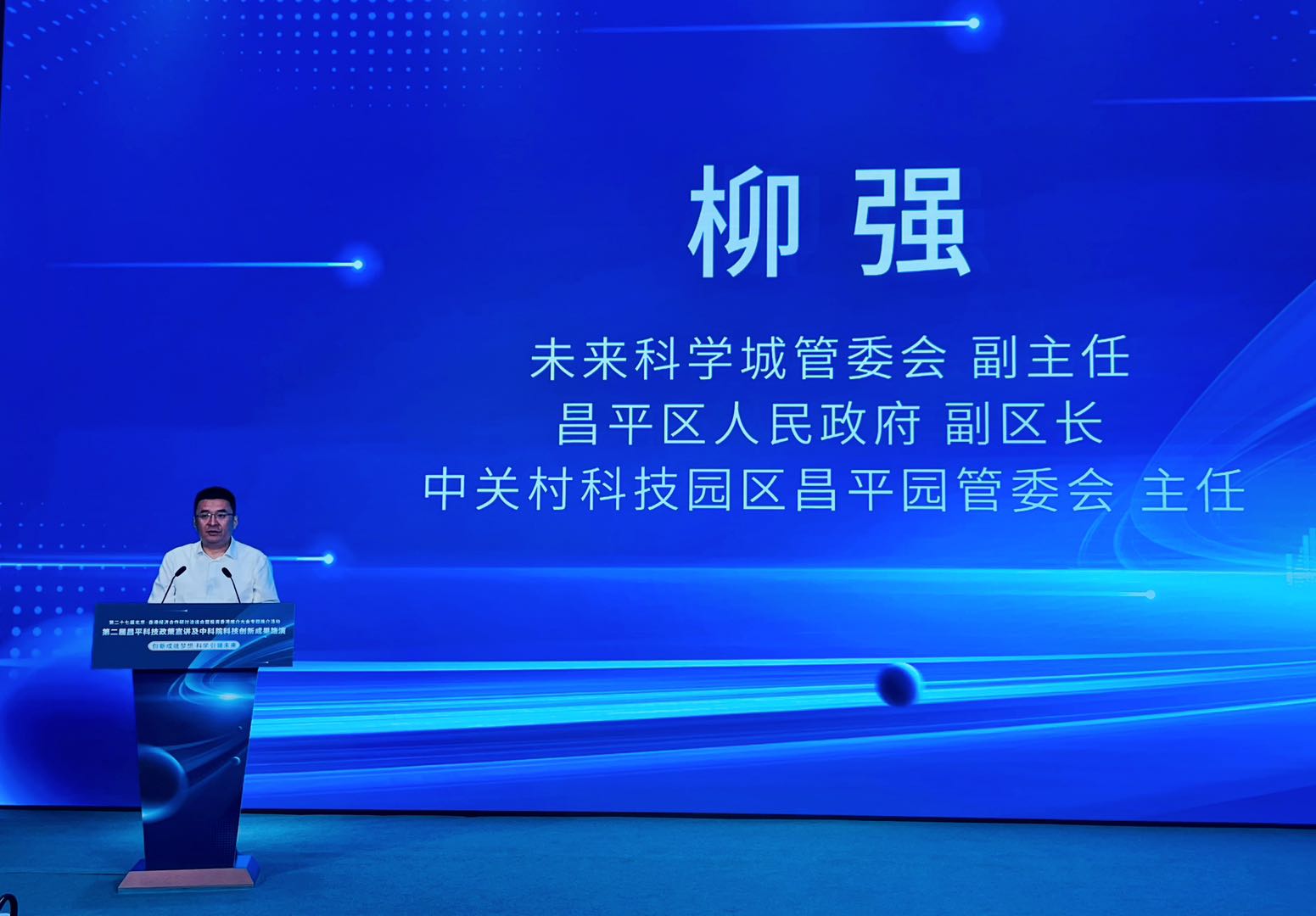 (大公文匯網 記者 李瑩茵)在深化京港兩地經濟合作與科技創新交流的背景下,第二十七屆北京·香港經濟合作研討洽談會暨投資香港推介大會專題推介活動——第二屆昌平區科技政策宣講及中科院科技創新成果路演活動於20日在北京未來科學城舉行。北京未來科學城管委會副主任、昌平區人民政府副區長、中關村科技園區昌平園管委會主任柳強在致辭中表示,昌平區始終堅持以全球視野謀劃和推動科技創新,打造國際科技創新中心和高水平人才高地。昌平區藉此次北京·香港經濟合作研討洽談會的契機,與中科院人才交流開發中心共同舉辦科技創新成果路演活動,期待進一步深化「政產學研金」融合協同,暢通基礎研究、應用開發、成果轉化和產業化鏈條,扎實推動高質量科技成果轉化邁向新階段。