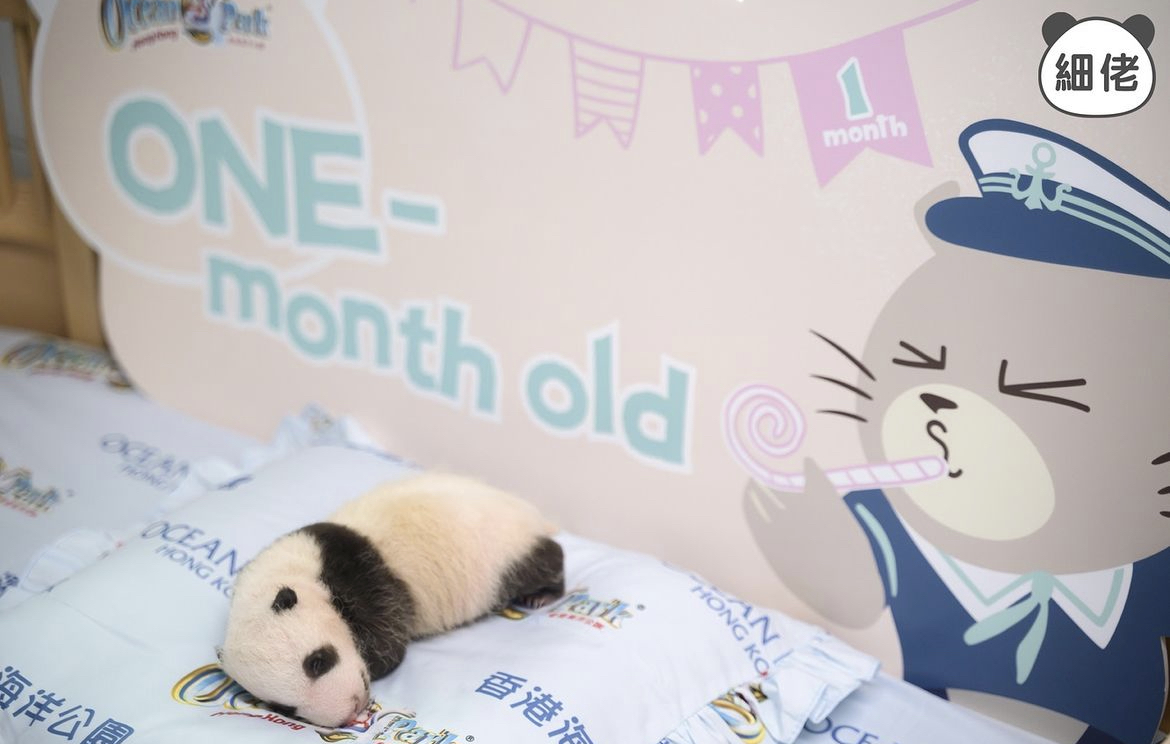 片段中「細佬」仍未能睜開雙眼,園方日前表示,隨着大熊貓寶寶慢慢長大,眼線會越來越分明,會先分開上下眼簾,慢慢開一條細縫。出生後一個半月左右,便會完全開眼。