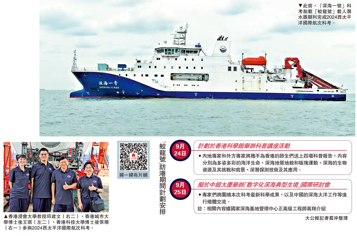 「蛟龍號」首個國際航次,也是聯合國「海洋十年」大科學計劃「數字化深海典型生境」下的首個國際航次。本航次包括8名外籍科學家在內的十餘名中外科學家順利完成18次下潛任務。許學偉是2024西太平洋國際航次科考航次首席科學家。他在接受大公報越洋衛星電話採訪時透露,三名香港科學家在本航次圓滿完成下潛,兩地在深海科研領域的合作進一步深化。