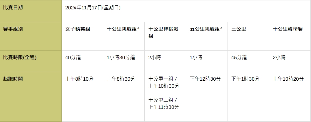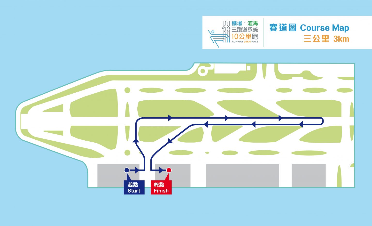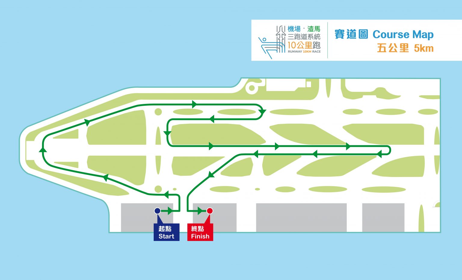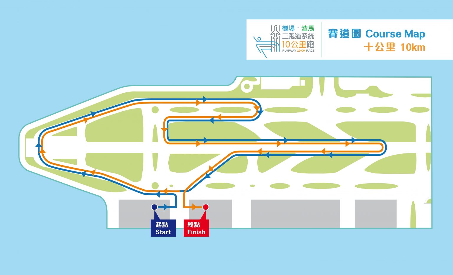 本次賽事設有「十公里賽」、「五公里賽」、「三公里賽」及「十公里輪椅賽」項目,同場舉辦「女子精英十公里國際賽」。賽事會在封閉中的中跑道舉行,並設有4條跑道線,跑手於亞洲博覽館報到及完成安檢後,由穿梭巴士接載參賽者到機場禁區,在停機坪集合及起步。