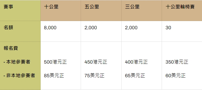香港本地跑手可以身份證號碼登記,非本地跑手則須提供旅行證件號碼登記。根據日程安排,第一輪抽籤結果將於10月1日公布,成功中籤的跑手須以付款確認。中籤者於領取跑手包及活動當天攜帶已登記的身份證明文件正本,以核對身份。今次賽事最低參賽要求是12歲以上,以符合民航條例申請禁區證要求。