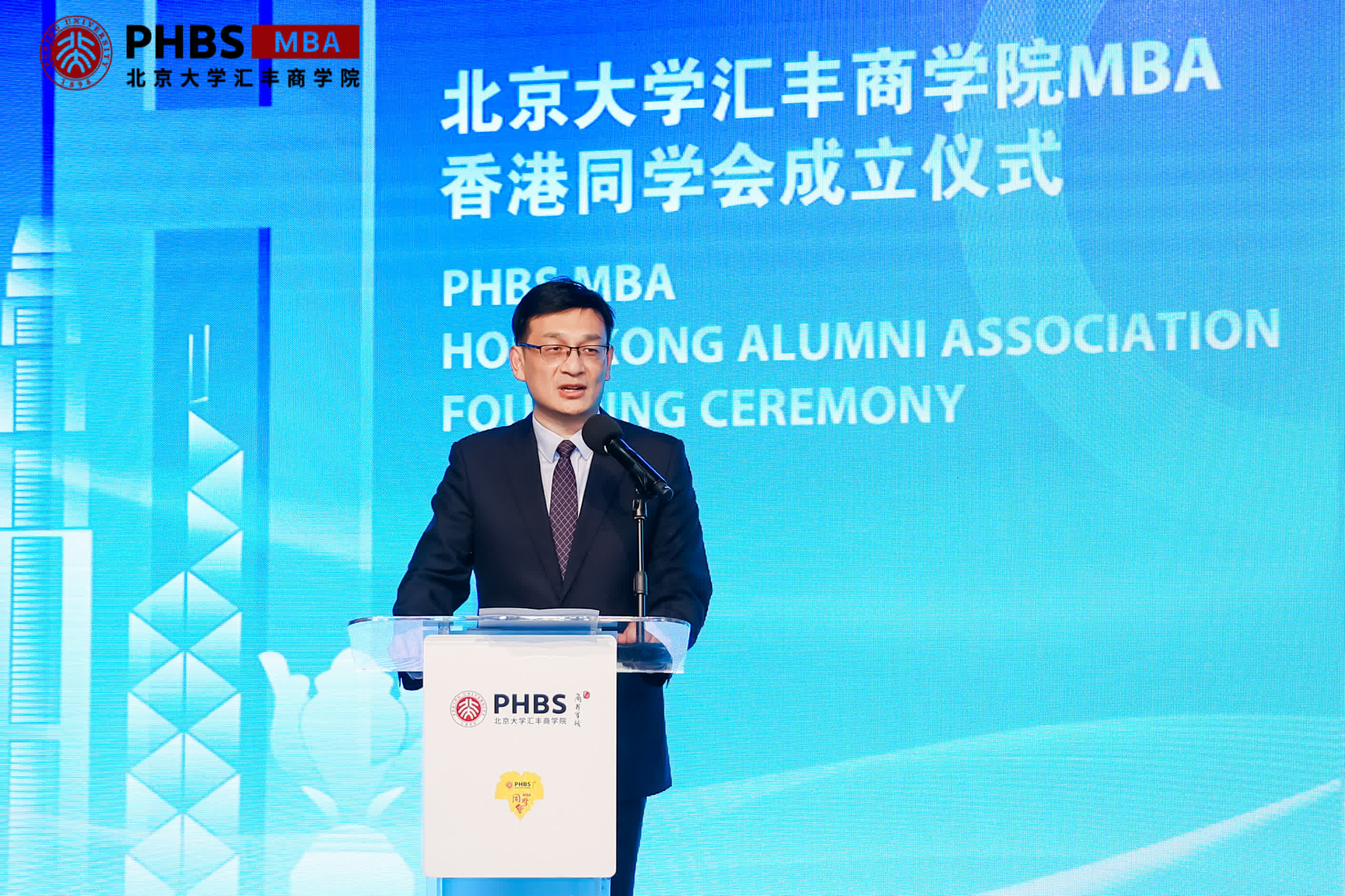 北京大學滙豐商學院院長助理、MBA項目主任鄭海洋教授發言致辭。他熱烈祝賀MBA香港同學會的成立,並帶領校友們回顧了學院在培養優秀人才方面的深厚底蘊。他強調,作為總部在大灣區的頂級商學院,未來將擴展香港招生及影響,積極響應大灣區發展的號召,為香港輸送優秀人才。依託MBA香港同學會的成立,會進一步擴展校友網絡,深化彼此間的情誼,讓更多北大匯豐校友建設香港、融入香港。