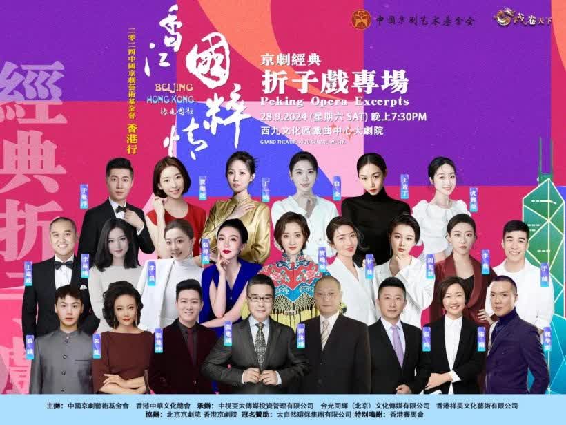 「香江國粹情——2024中國京劇藝術基金會香港行」將於9月27至29日在香港西九文化區戲曲中心大劇院精彩上演。此次活動由中國京劇藝術基金會與香港中華文化總會聯合主辦,中視亞太傳媒投資管理有限公司承辦,由香港賽馬會贊助,並在各界的共同努力下,希望通過京劇藝術這一載體,獻禮中華人民共和國75周年華誕,加強內地與香港戲曲藝術的交流,弘揚中華優秀傳統文化,讓文脈賡續,弦歌不輟。
