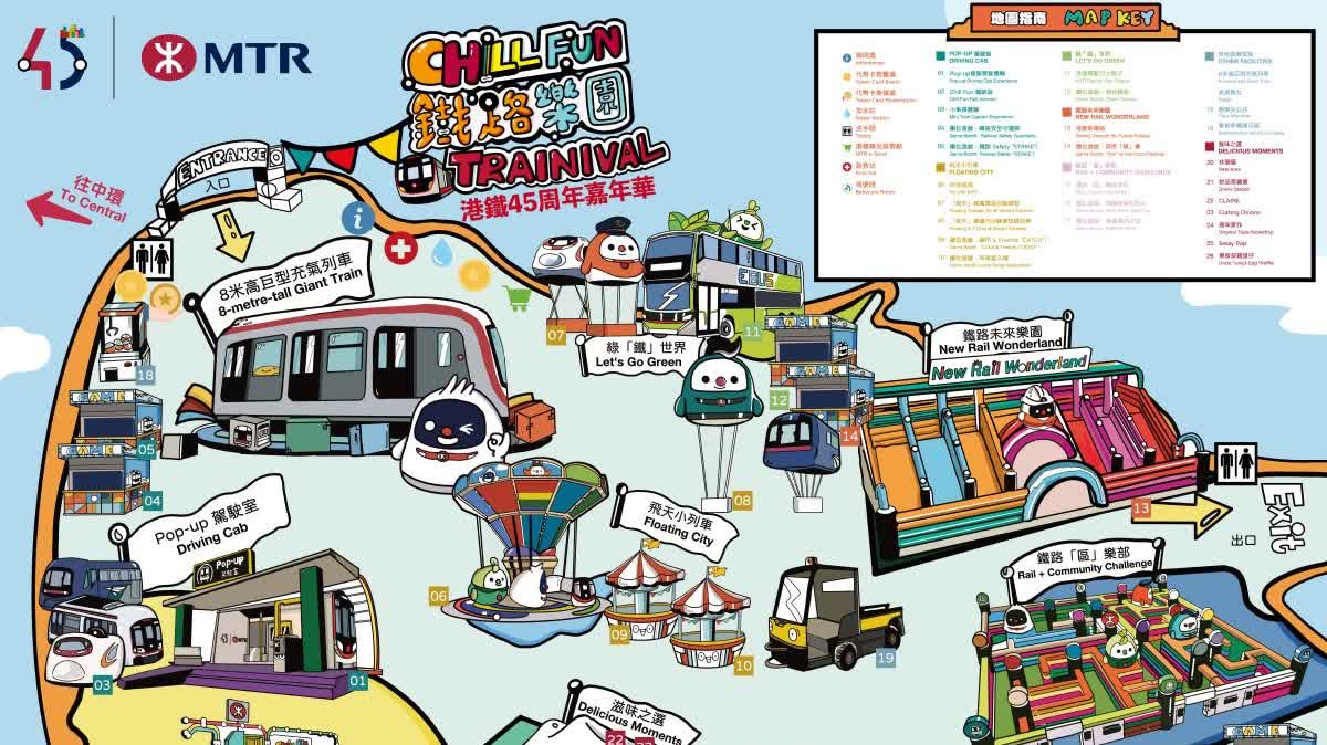 「Chill Fun鐵路樂園」設有8米高巨型充氣列車及45個迷你版列車、港鐵吉祥物公仔及馬賽克車站立方體,為嘉年華注入活力,等你打卡捕捉!