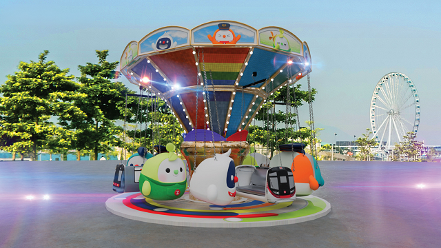 港鐵將鞦韆設計成不同列車型號,讓你能夠同鐵仔及一眾好友騰躍空中,感受一段奇秒的「離地」體驗。