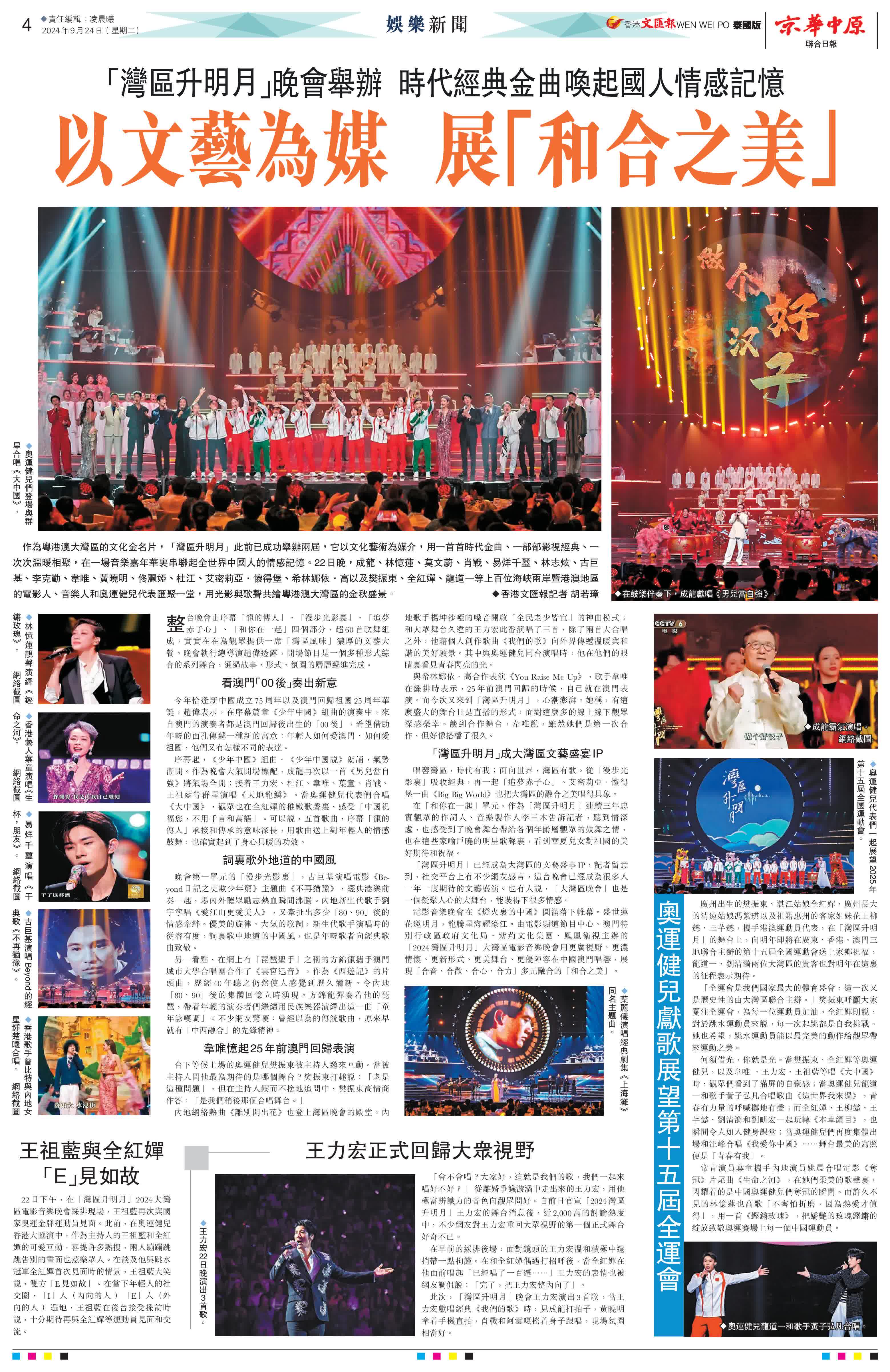 報道原文:「灣區升明月」晚會舉辦 以文藝為媒 展「和合之美」