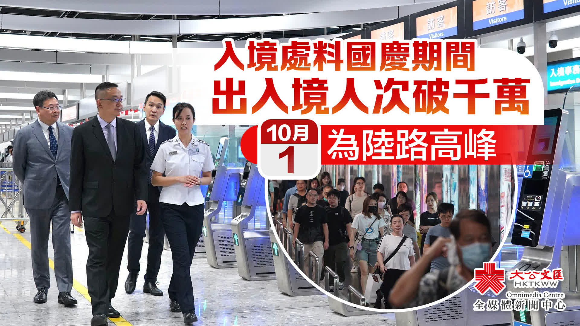 大公文匯全媒體報道,國慶黃金周將至,入境處預計今年國慶假期期間(即9月28日至10月7日)將有約1,003萬人次(包括香港居民及訪客)經各海、陸、空管制站進出香港,約854萬人次會經各陸路邊境管制站進出香港。其中,陸路出境和入境高峰期同為10月1日(星期二),預計出境人次52.3萬,入境人次為63.2萬。