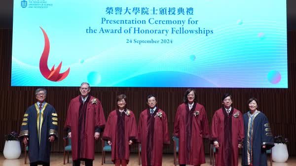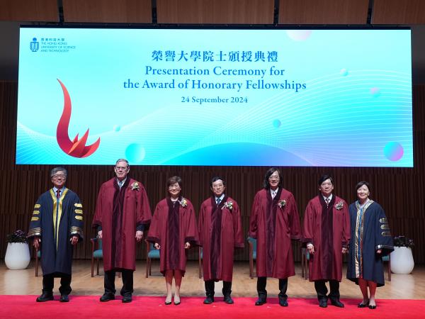 大公文匯全媒體報道,香港科技大學今日(24日)向五位傑出人士頒授榮譽大學院士,他們分別為包弼德、簡吳秋玉、高秉強、吳永順及容永祺。榮譽大學院士頒授典禮由大學校董會主席沈向洋和校長葉玉如主持。