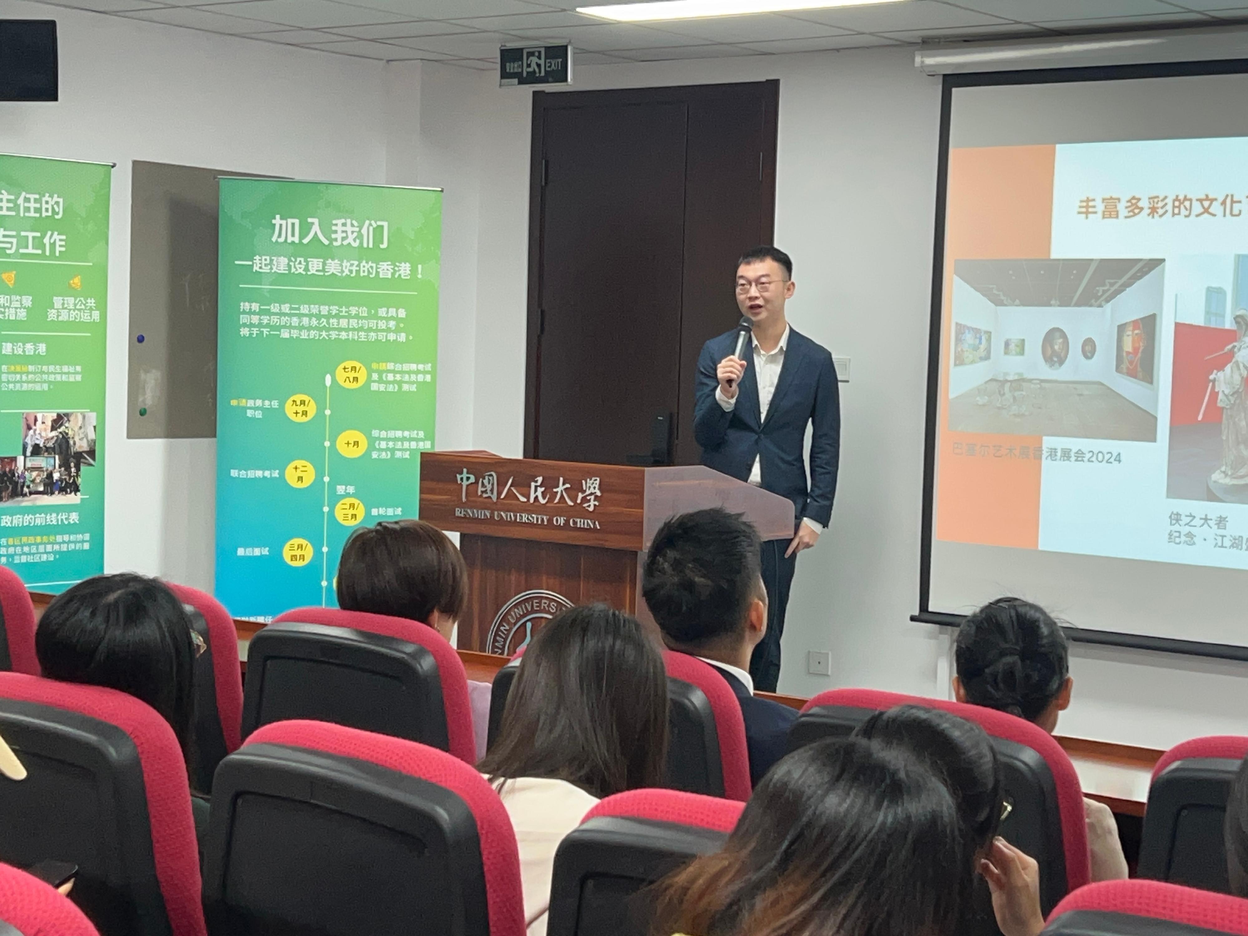 此外,公務員事務局代表亦在駐滬辦舉辦的「『青年有為 與國同慶』華東地區香港學生青年慶祝中華人民共和國成立75周年聚會」中,向參與活動的青年介紹政務主任及行政主任職系,讓更多人認識相關職系的工作內容及發展前景,鼓勵他們投考特區政府公務員職位。