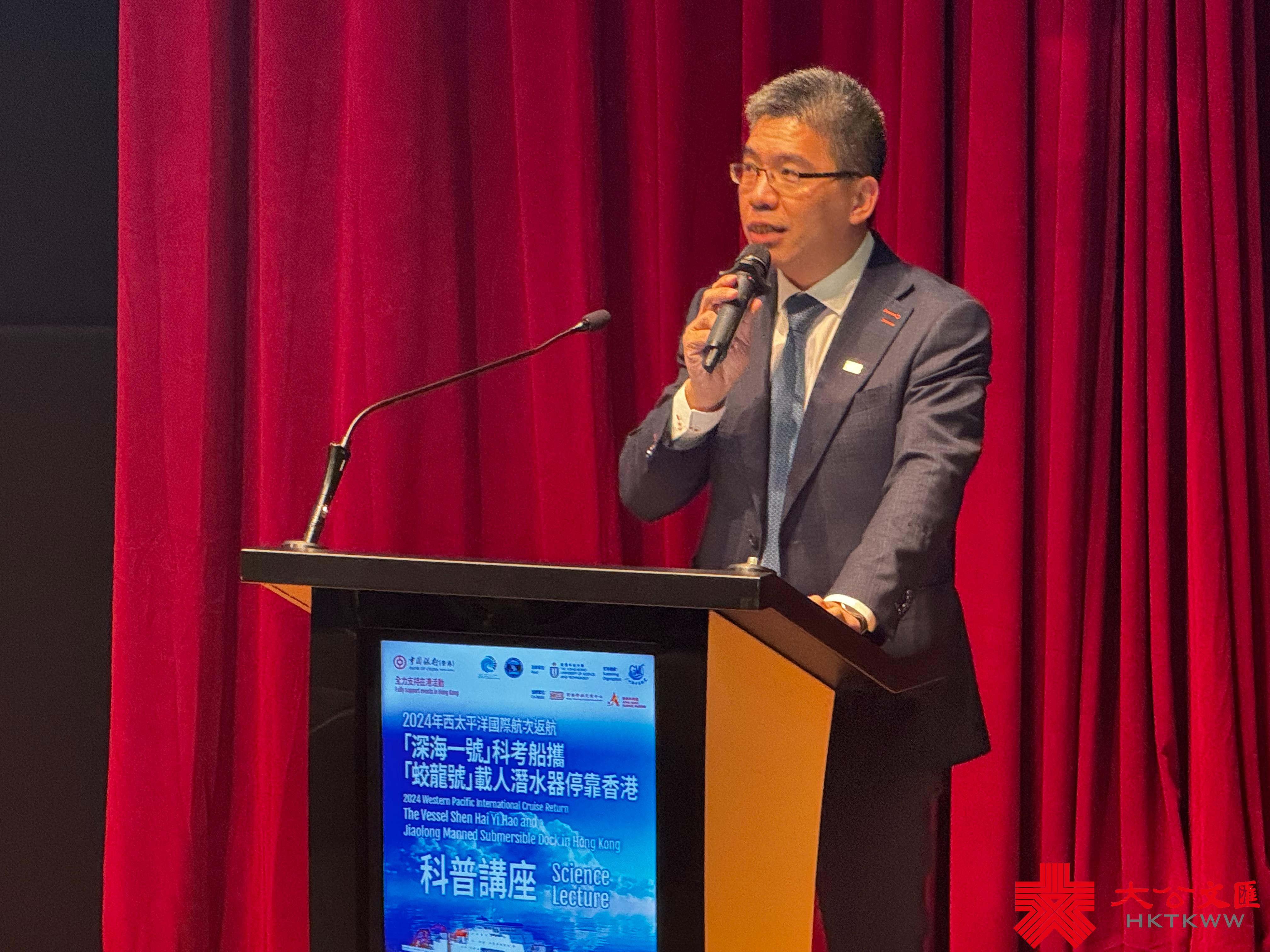 京港學術交流中心總裁、「深海一號」科考船攜「蛟龍號」停靠香港籌委會副主席徐海山在講座中分享了「蛟龍號」的卓越成就,強調了自主研發的重要性。他提到,「蛟龍號」能夠在7000米深的海底抵抗比地面壓力重700倍的水壓,這不僅是科技的勝利,也是國家實力的體現。他強調,科學無國界,但科學家有祖國,中國的科學家與國際同行並肩探索海洋,實踐了對全球利益和可持續發展的承諾。此次「蛟龍號」隨母船「深海一號」科考船完成暑期國際航線並停靠香港,不僅彰顯了中國科研的進步,也體現了對香港成為國際教育和科研中心的支持。