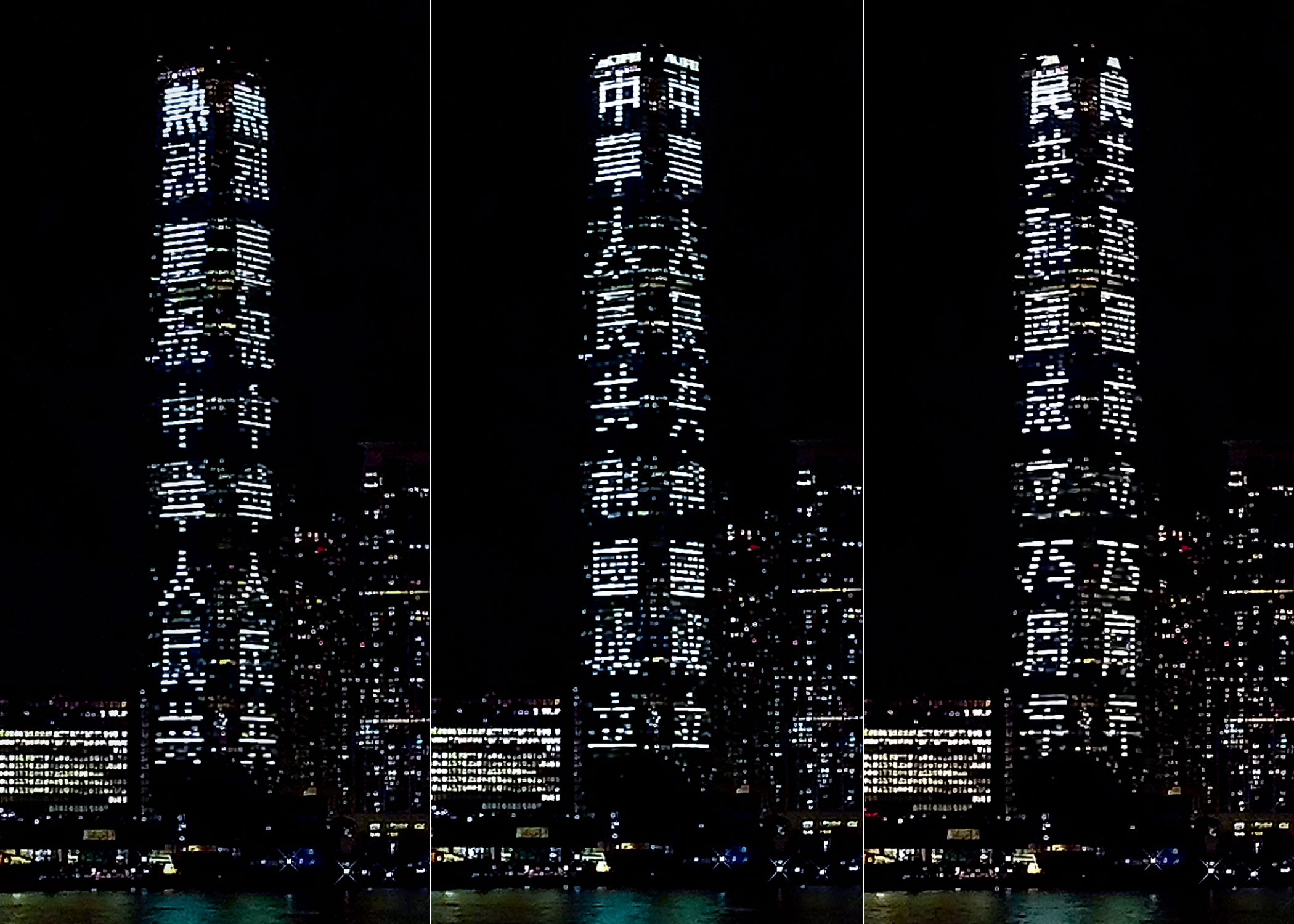 全港最高的地標式建築物環球貿易廣場(ICC),將於9月26日至10月2日在外牆展示國慶燈飾,以閃亮的祝賀語照亮維港。為凝聚社會喜慶氣氛,在國慶前ICC亦會播放熊貓燈飾動畫,以感謝國家再次送贈一對大熊貓予香港。