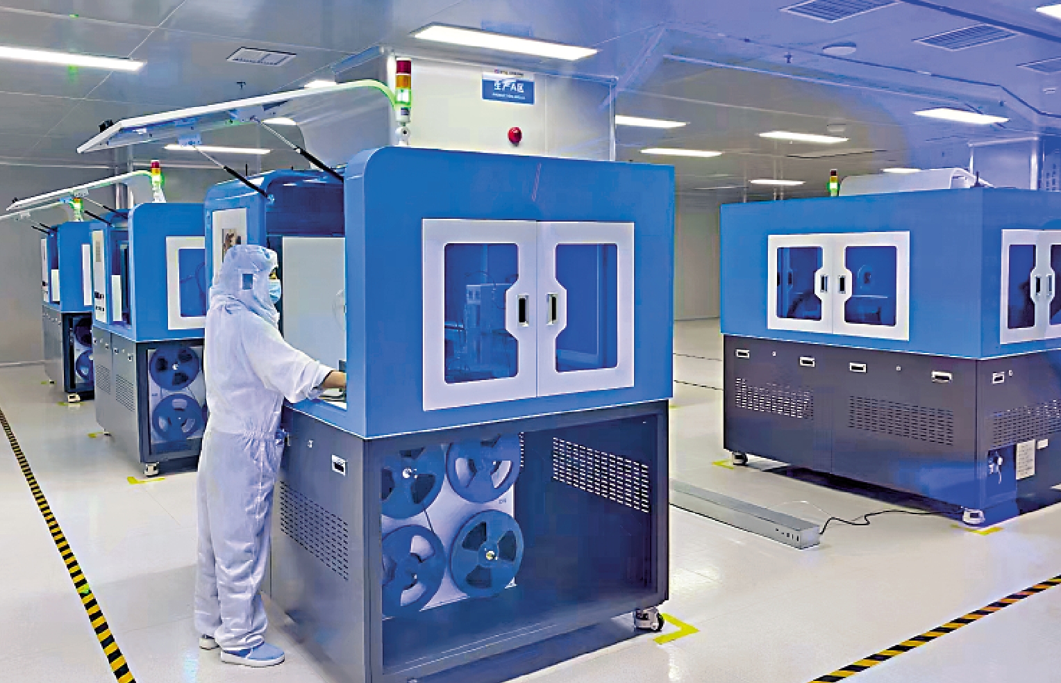 (大公報 記者 李陽波)藍白相間的車間主色調和光源,一塵不染的生產線,猶如太空人般「全副武裝」的操作員……走進位於陝西銅川的港資企業陝西日月芯半導體有限公司芯片車間,彷彿瞬間穿越到了曾經在科幻片中出現的「未來工廠」。