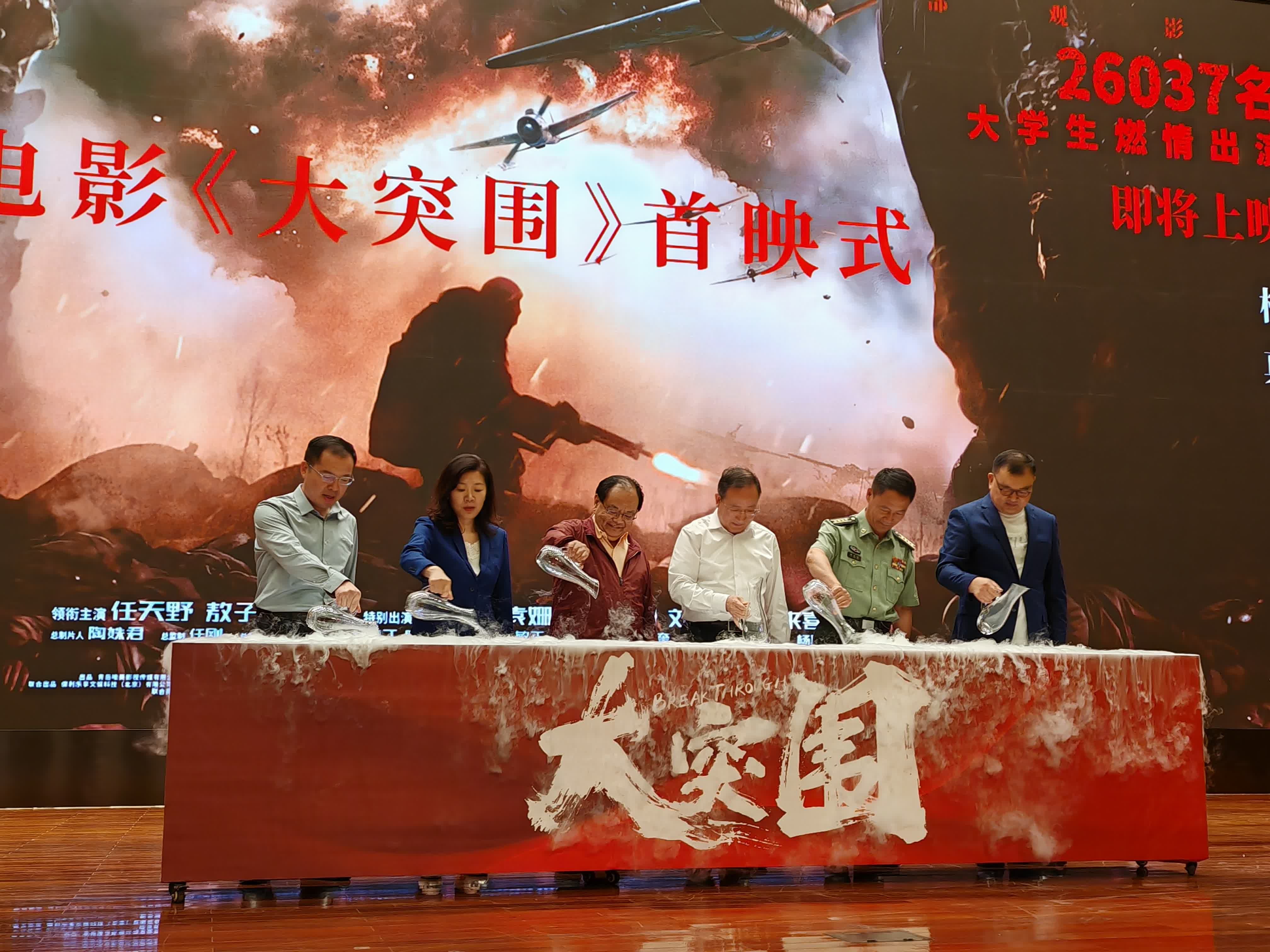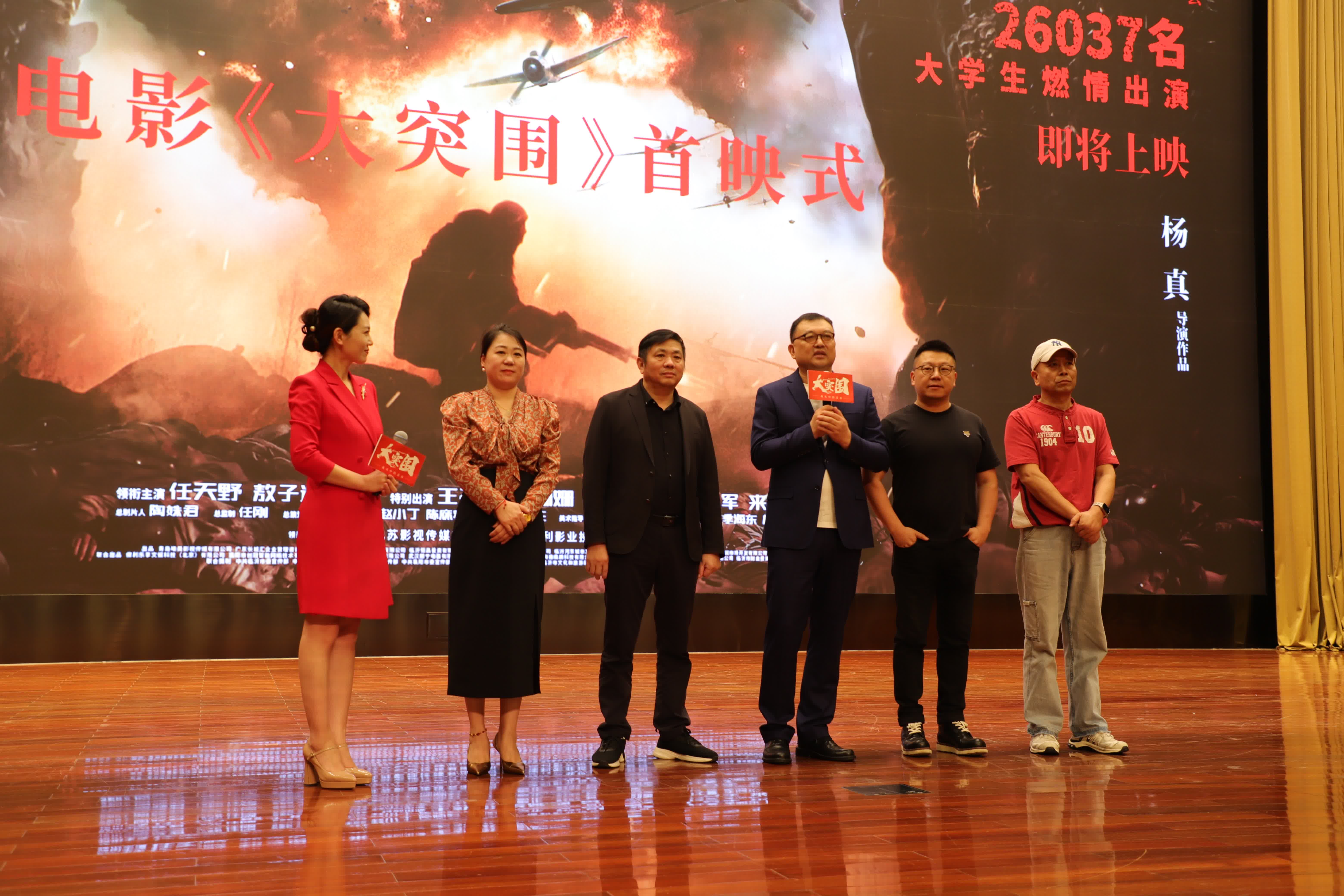 儀式現場,來自北京的專家學者,山東省、臨沂市有關部門單位的領導等嘉賓齊聚一堂,共同觀賞電影《大突圍》首映式。電影總製片人陶姝君、導演楊真以及主創人員與觀眾一起觀看影片,並分享了拍攝背後的故事。
