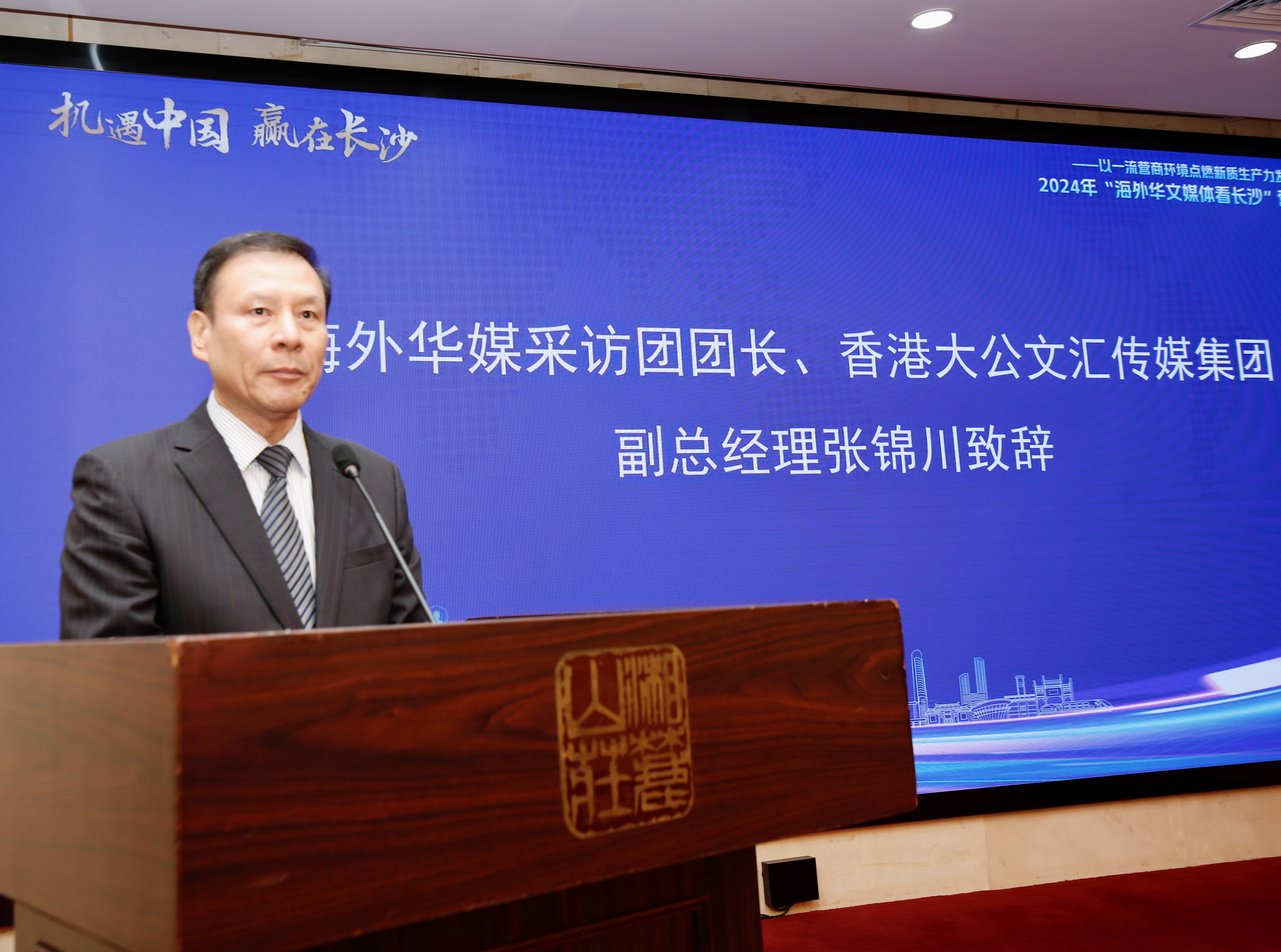 海外華媒採訪團團長、香港大公文匯傳媒集團副總經理張錦川在致辭中表示,「海外華文媒體看長沙」採訪團一行自25日起開始深入探訪長沙,從比亞迪、三一集團等製造業巨擘,到芒果TV等文創翹楚,到中南智能裝備、聖湘生物等新質生產力代表,到繁榮的中非貿易,再到充滿發展潛力的嶽麓山大學科技城和大澤湖海歸小鎮研發中心,無一不彰顯長沙營商環境的多元與普適。長沙不愧為創新創業的沃土、投資創富的樂園。他希望到訪的海外華文媒體廣泛傳播長沙優化營商環境的精彩故事,讓海外企業和企業家更加了解、關注長沙,激發他們來此投資興業的熱情。