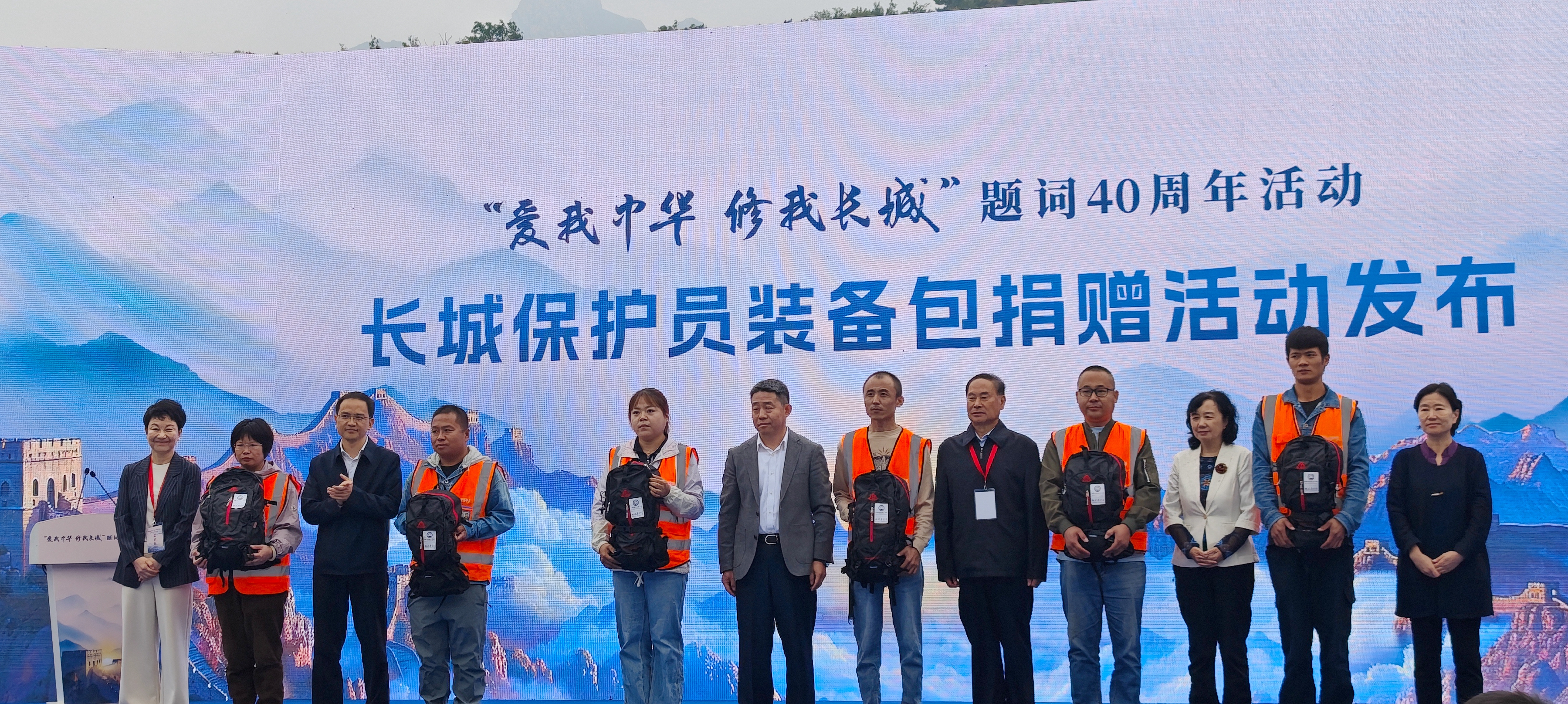 今次「愛我中華 修我長城」題詞40周年活動由國家文物局主辦,中國文化遺產研究院、北京市文物局、北京市延慶區人民政府承辦。活動上,騰訊公益慈善基金會捐贈500萬元,為全國7481名長城保護員購置裝備包,為保護員們再「加油」。據悉,包內配有急救包、登山杖、手電筒、葡萄糖等物資。
