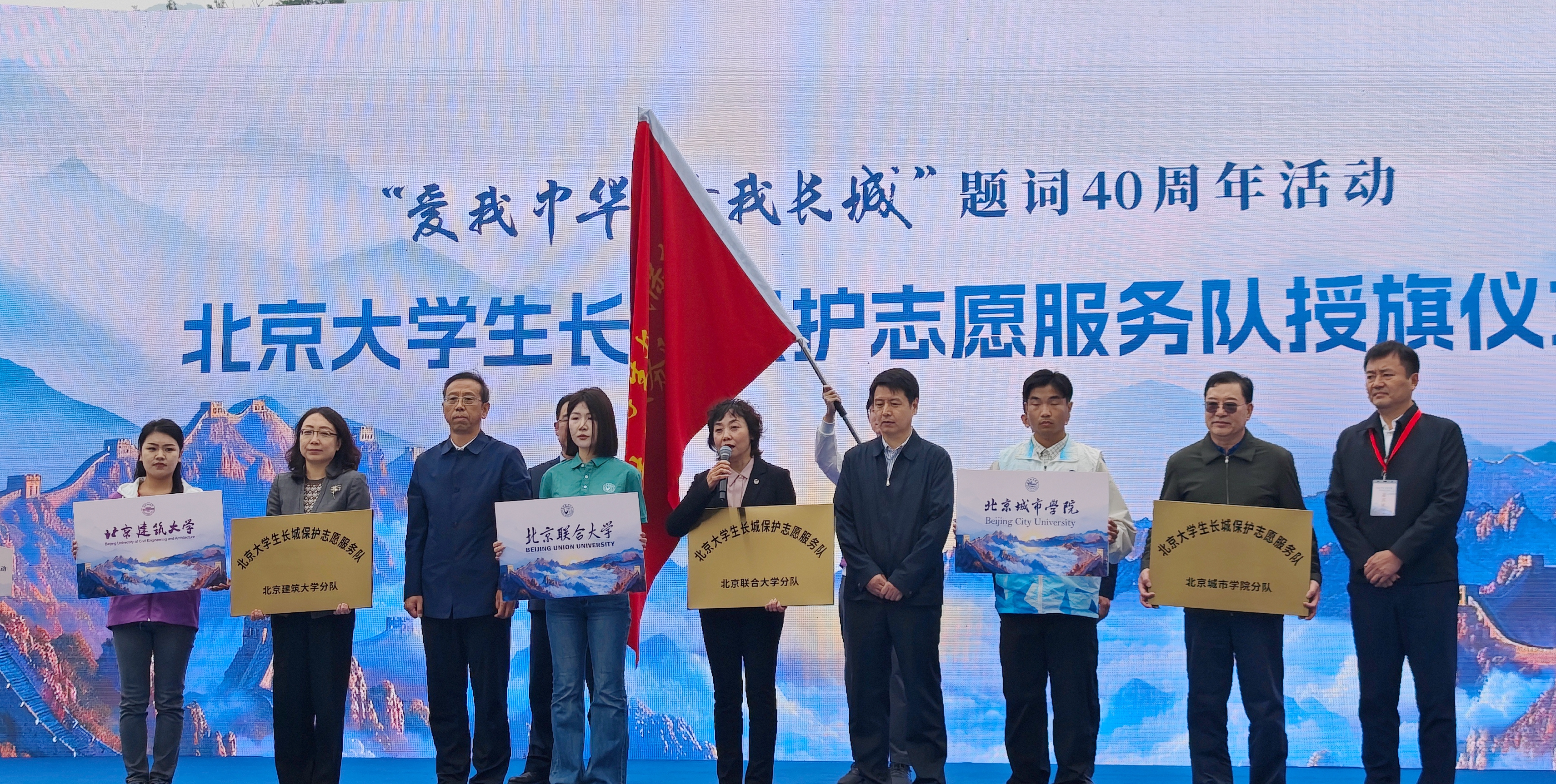 如今,越來越多社會力量,尤其是年輕人加入守護萬里長城的隊伍。活動中,北京市文物局、共青團北京市委員會為北京大學生長城保護志願服務隊授旗,為長城保護隊伍注入新鮮血液。
