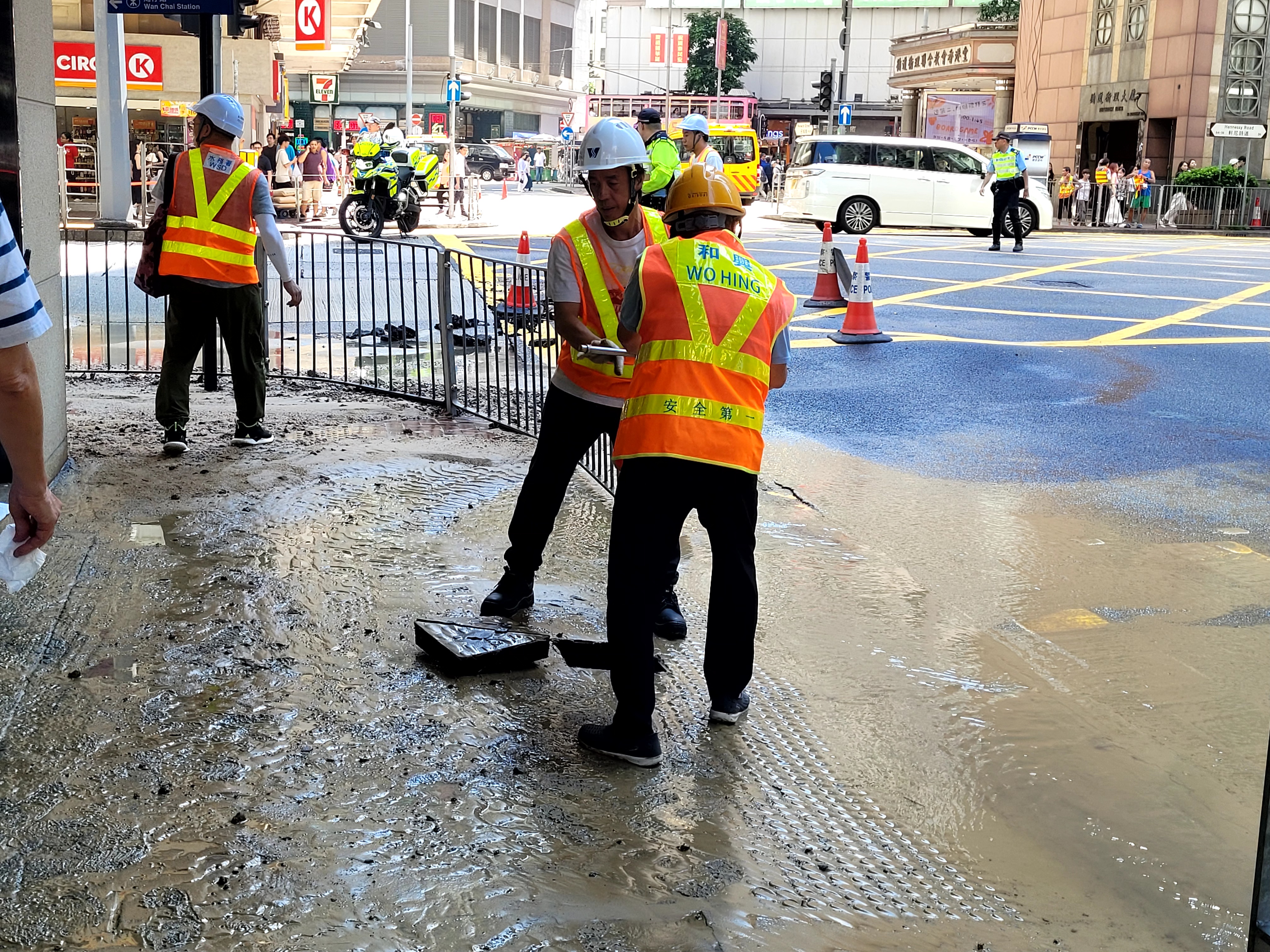 大公文匯全媒體報道,灣仔軒尼詩道懷疑有水管爆裂。今日(17日)中午,灣仔軒尼詩道懷疑地底有水管爆裂,上址交通受到影響,往銅鑼灣方向行車受阻。