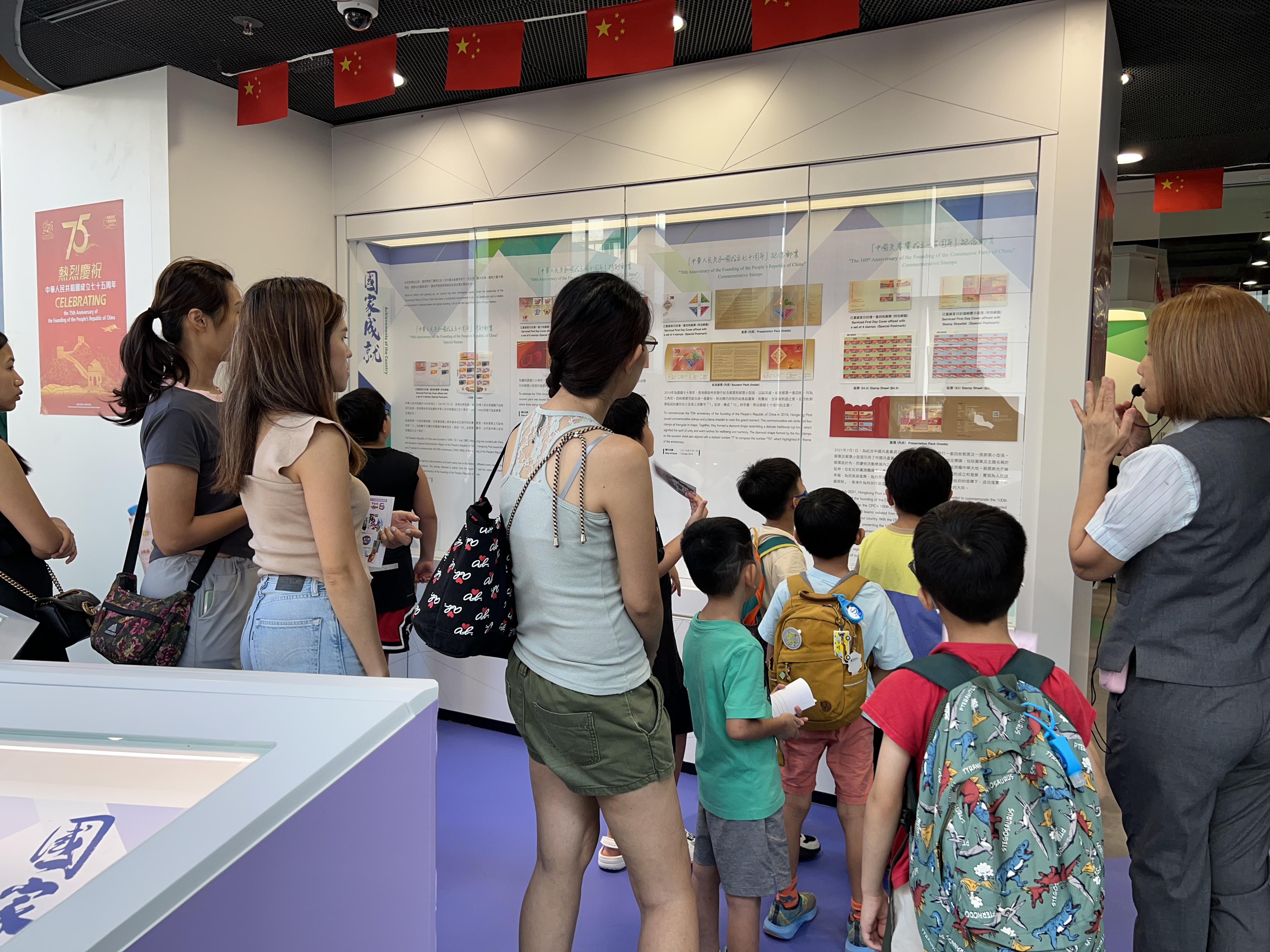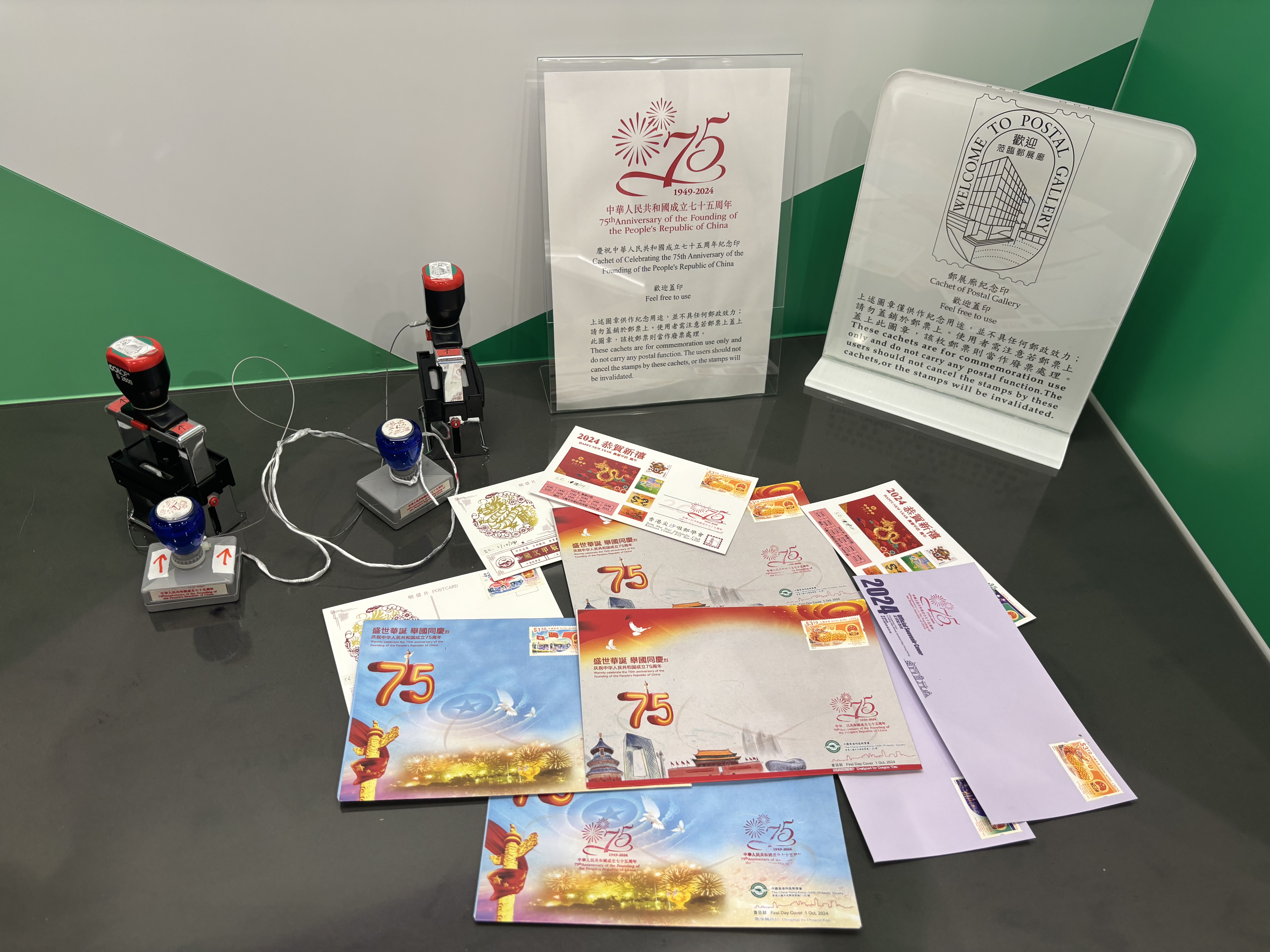 香港郵政還配合此次展覽的四大主題設計了一套4款的明信片,並會按次序每星期派發一款。每位參加導賞團的人士都可獲發一張作紀念品,更可即場在郵展廊蓋上中華人民共和國成立75周年紀念印。