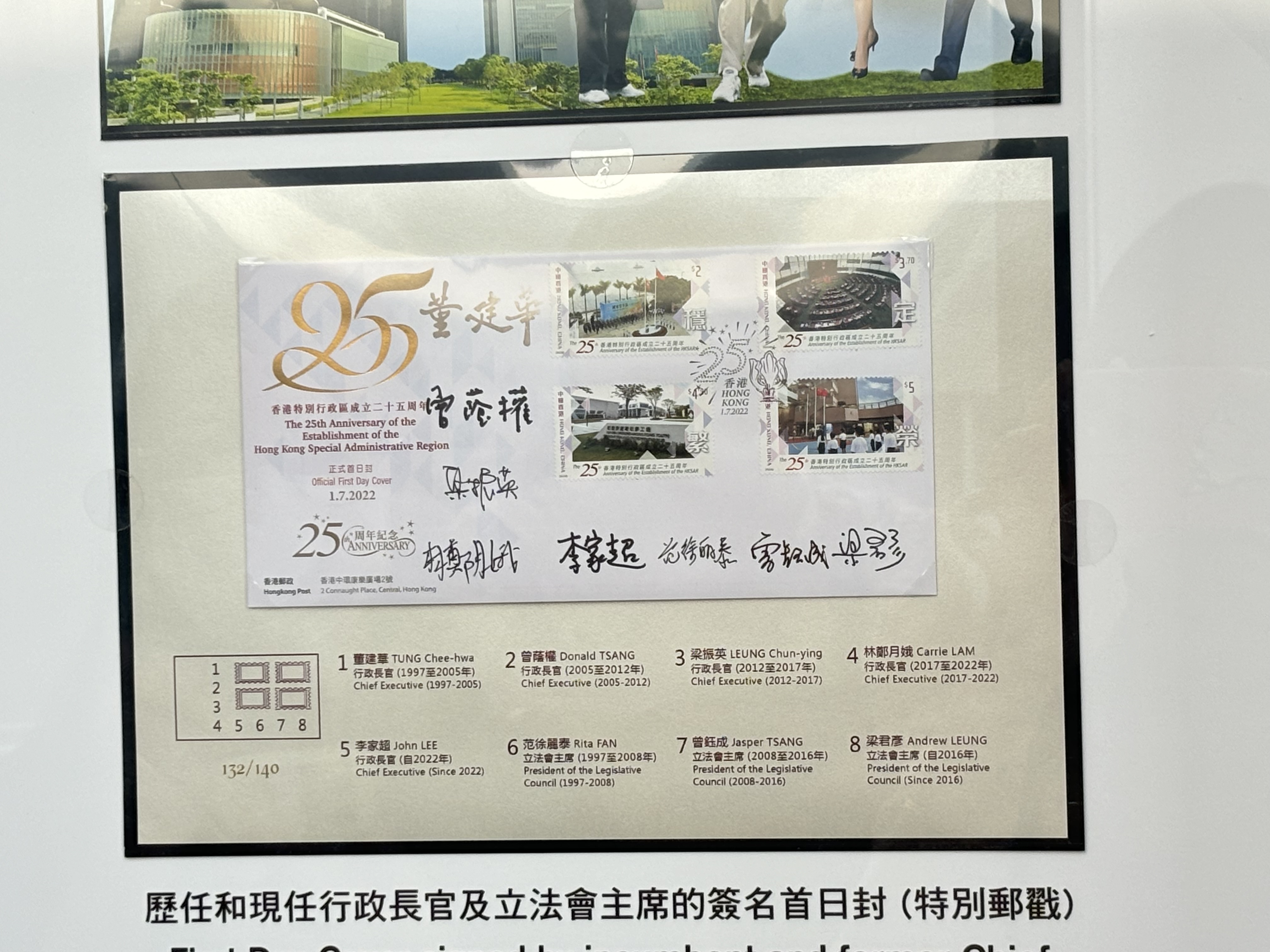 精彩展品包括「中國共產黨成立一百周年」系列、首套「中華人民共和國香港特別行政區成立紀念」郵票及歷任和現任行政長官及立法會主席的簽名首日封、使用紅色的螢光油墨印製的「中國首次載人航天飛行成功」紀念郵票,首套五邊形「香港公共房屋的發展」特別郵票和首次運用壓印技術製成的「香港供水一百五十年」特別郵票等,讓參觀人士一次飽覽各不同設計的郵票。