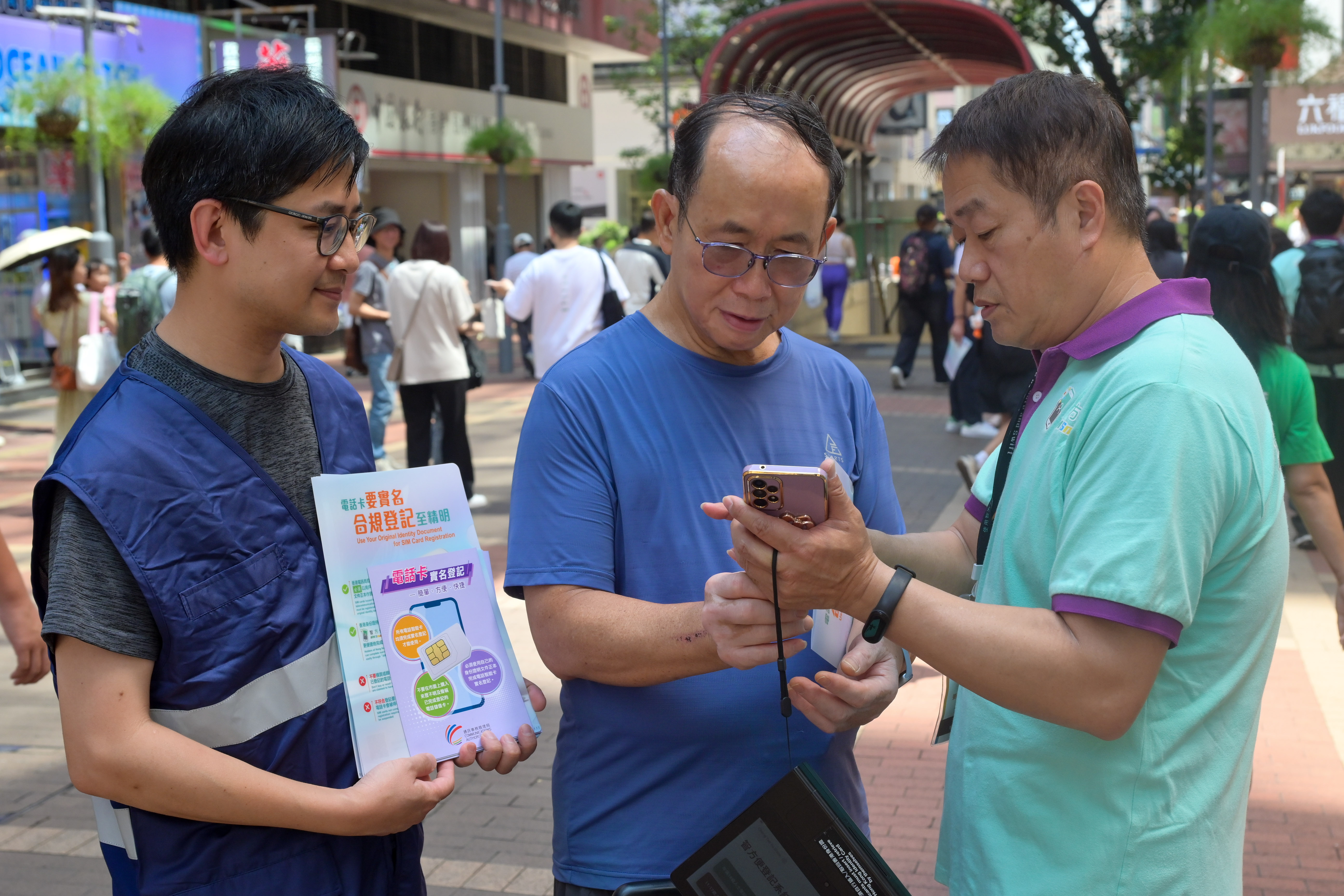 為協助公眾了解相關優化安排,通訊辦今日聯同數字政策辦公室在旺角進行宣傳教育活動,並安排「智方便」流動登記隊在場協助市民即時登記「智方便」。通訊辦職員亦向市民派發傳單和紀念品,提醒他們不要購買或轉售聲稱已完成實名登記的電話儲值卡。