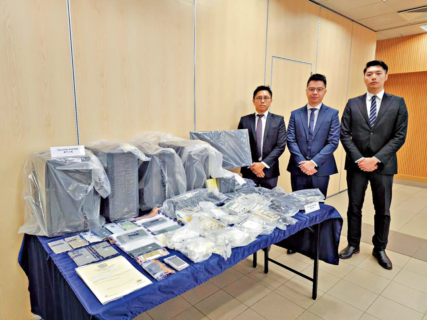另外,油尖警區於本月19至26日進行代號「世爵」的行動打擊詐騙及洗黑錢案,拘捕36男14女,年齡介乎16至75歲,他們報稱為地盤工人、清潔工、家庭主婦、學生、無業等,大部分是傀儡戶口持有人和詐騙電話登記人,涉及10宗投資騙案、10宗網購騙案、8宗求職騙案、8宗電騙、4宗低息貸款騙案及3宗其他類型騙案,涉款達1.1億元。單一最大損失的受害人為一名外籍公司董事,墮入投資騙案,將3000萬港元轉至本地5個銀行戶口。