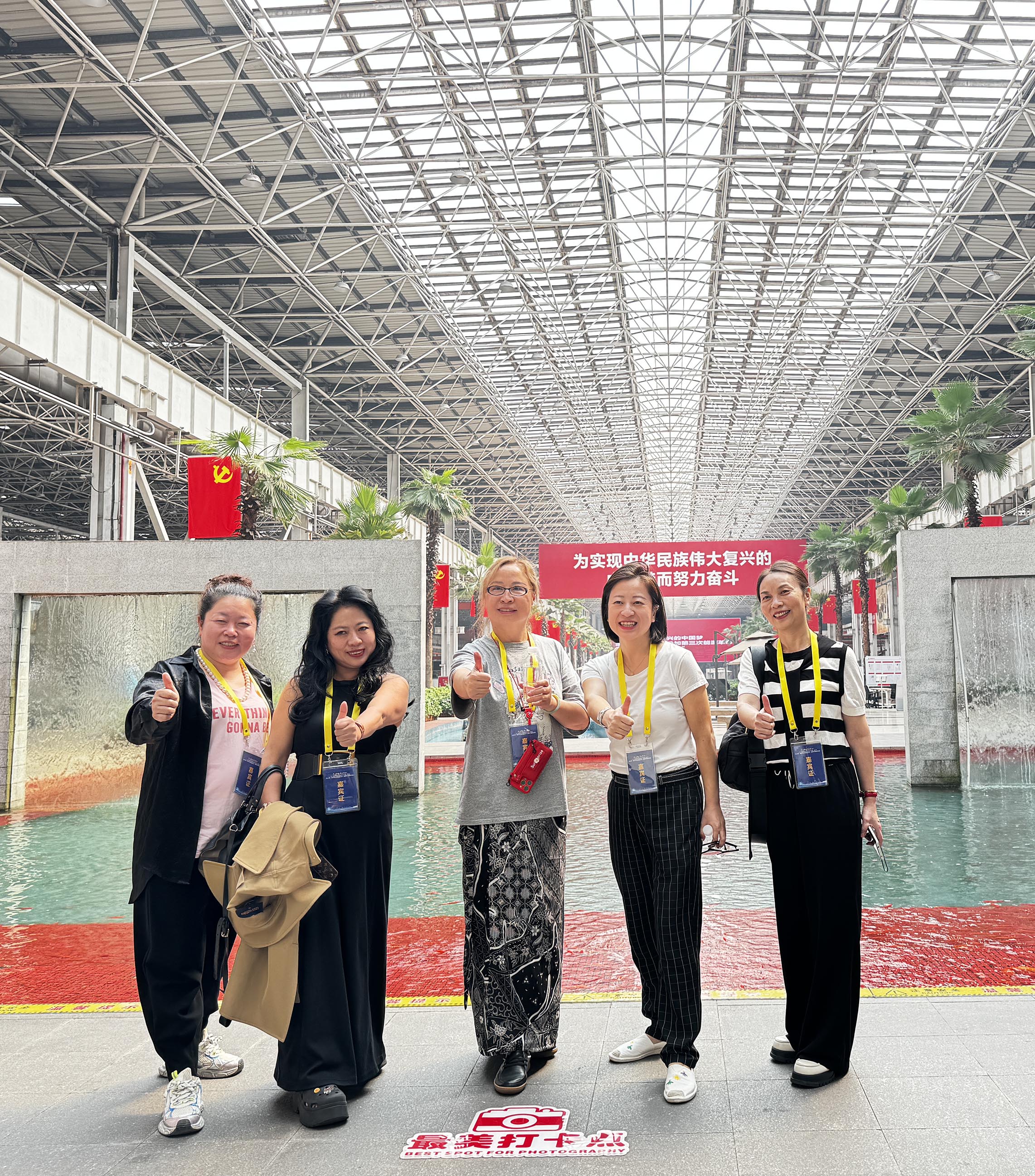 來到18號工廠的中廳,眼前景象頓時讓海外華媒記者眼前一亮,只見巨大的透明頂棚,兩旁棕櫚樹整齊成行,水池裏波光粼粼,整體洋溢着濃郁的熱帶風情,感覺彷彿走進了一處風光怡人的公園,完全顛覆了記者們心中對製造企業的刻板印象。