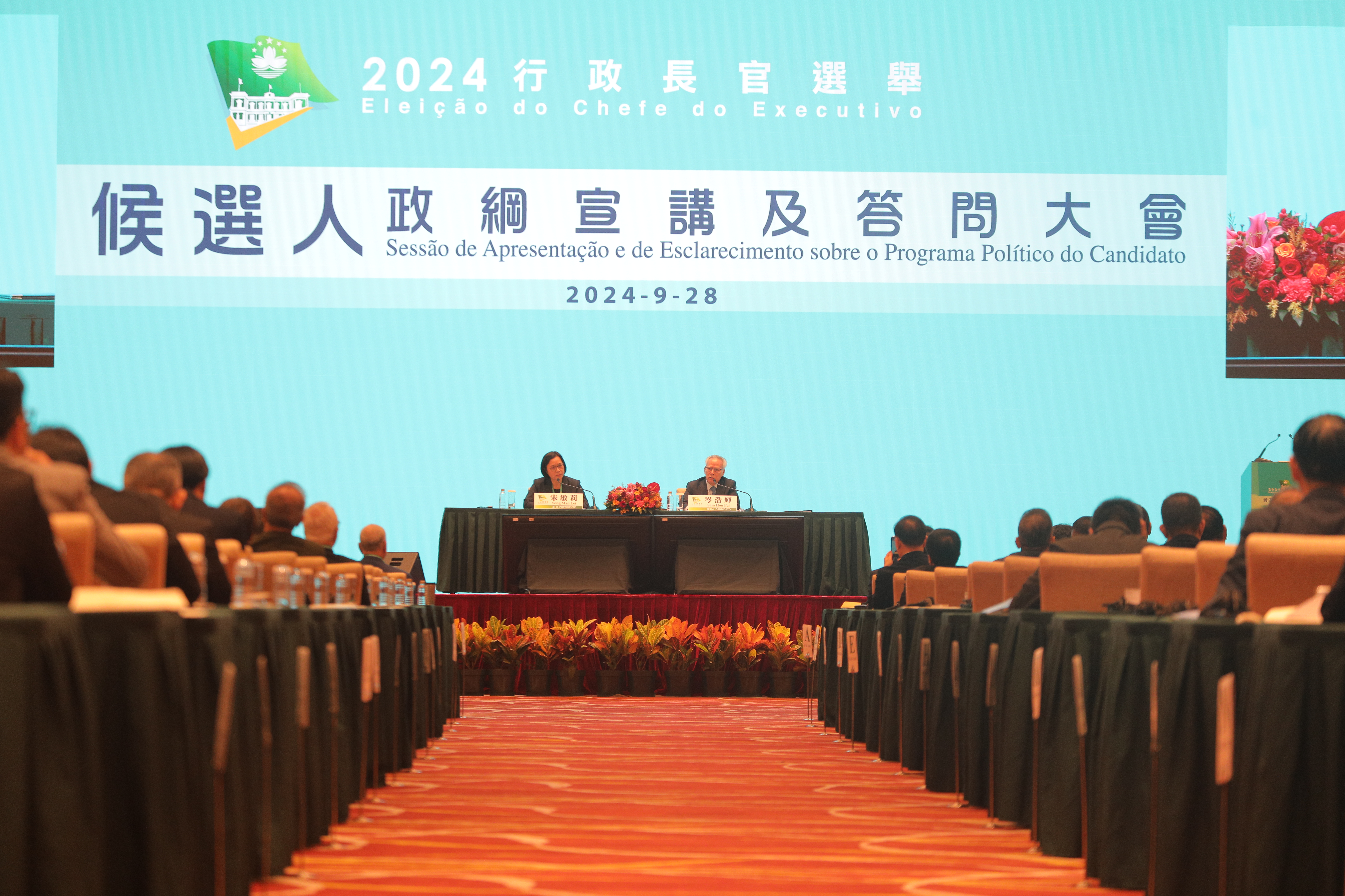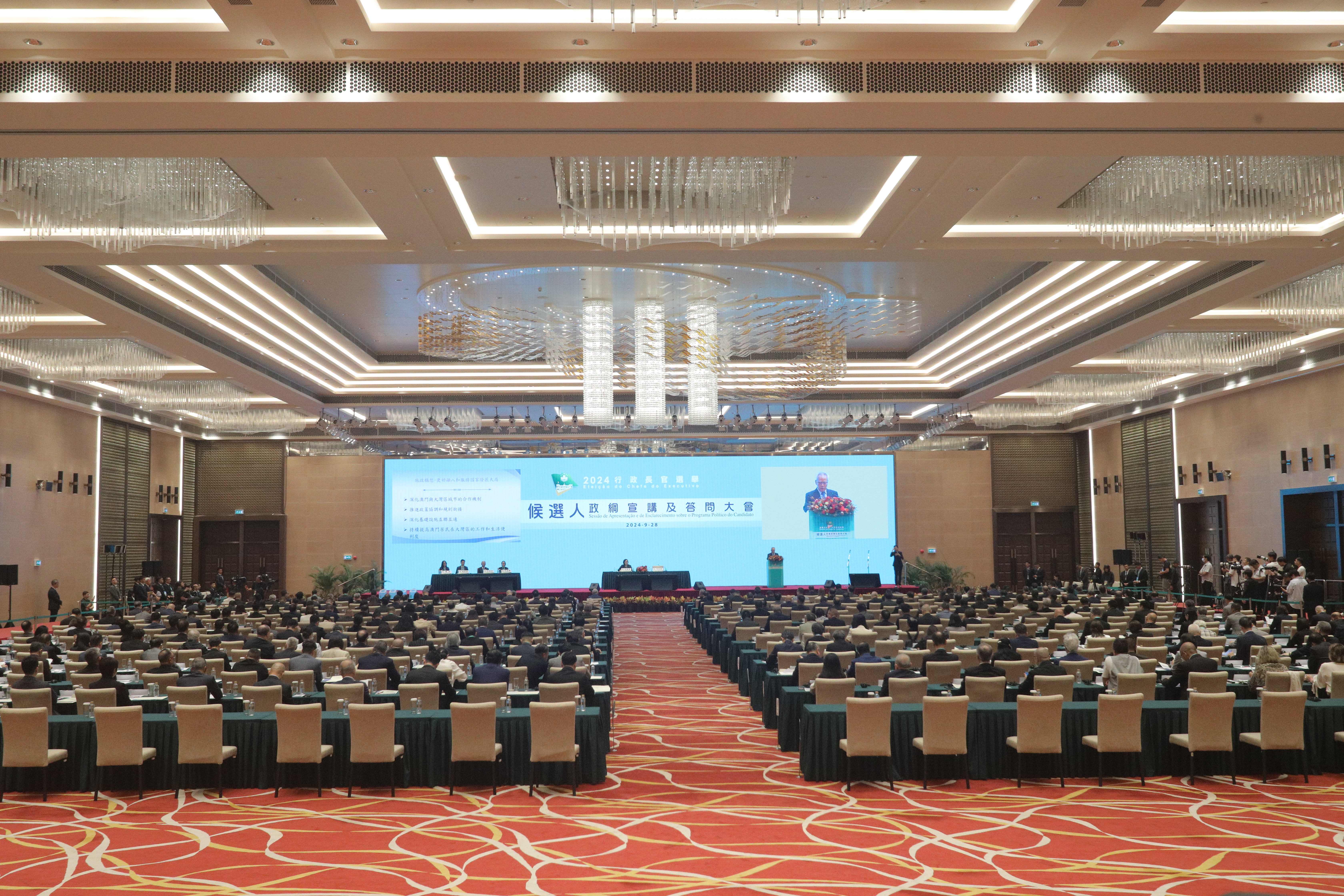 (大公文匯全媒體 記者 鄭洢林)據澳門特區政府新聞局消息,澳門特區第六任行政長官選舉的競選活動期為9月28日零時至10月11日午夜12時。隨着競選期的展開,澳門特區行政長官選舉管理委員會於今日(28日)上午10時至下午1時,為澳門特區行政長官選舉候選人舉辦政綱宣講及答問大會,讓澳門特區行政長官選舉委員會委員了解候選人的政綱,並與候選人交流。