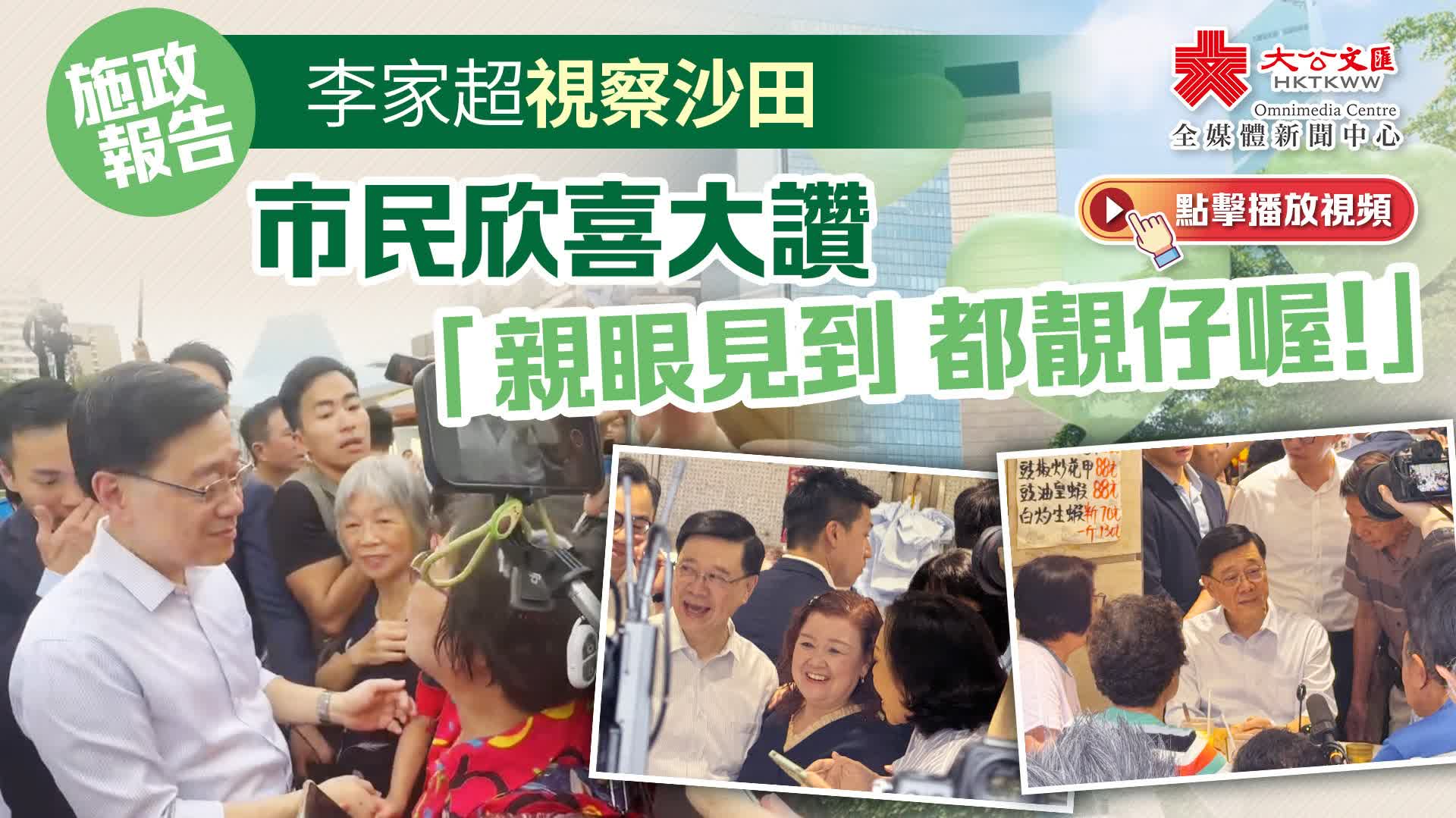 (大公文匯全媒體 記者 周傾芫)行政長官李家超今日(28日)赴沙田沙角村訪問,就《施政報告》進行地區諮詢。大批市民在旁簇擁、拍照,有市民見到李家超欣喜大讚,「親眼見到,都靚仔喔!」亦有市民向李家超表示:「多謝你哋,帶我哋生活好!」